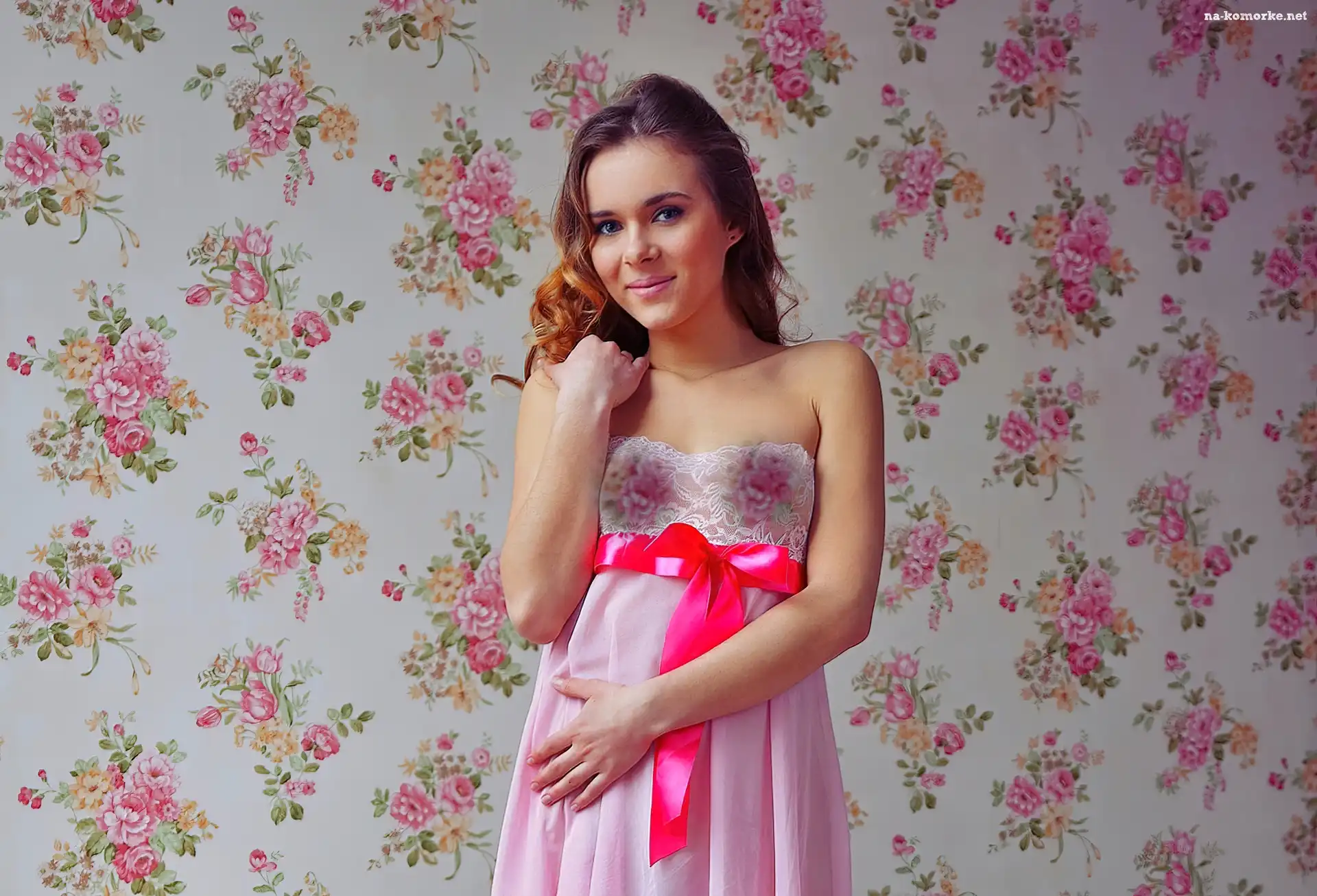 Tapeta, Kobieta, Makijaż, Różowa, Suknia na Komórkę
