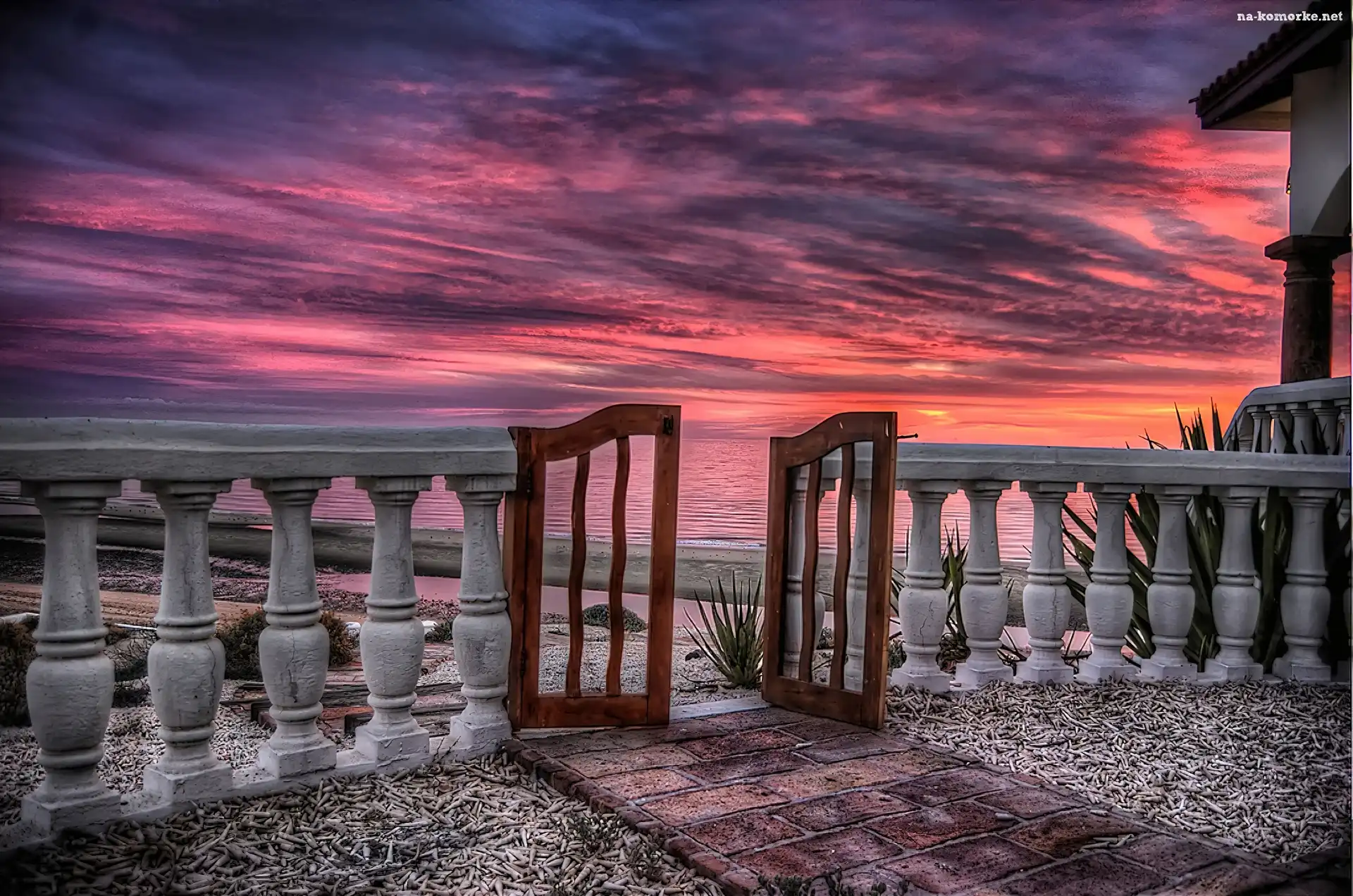 Taras, Plaża, Zachód, Słońca, Morze na Komórkę