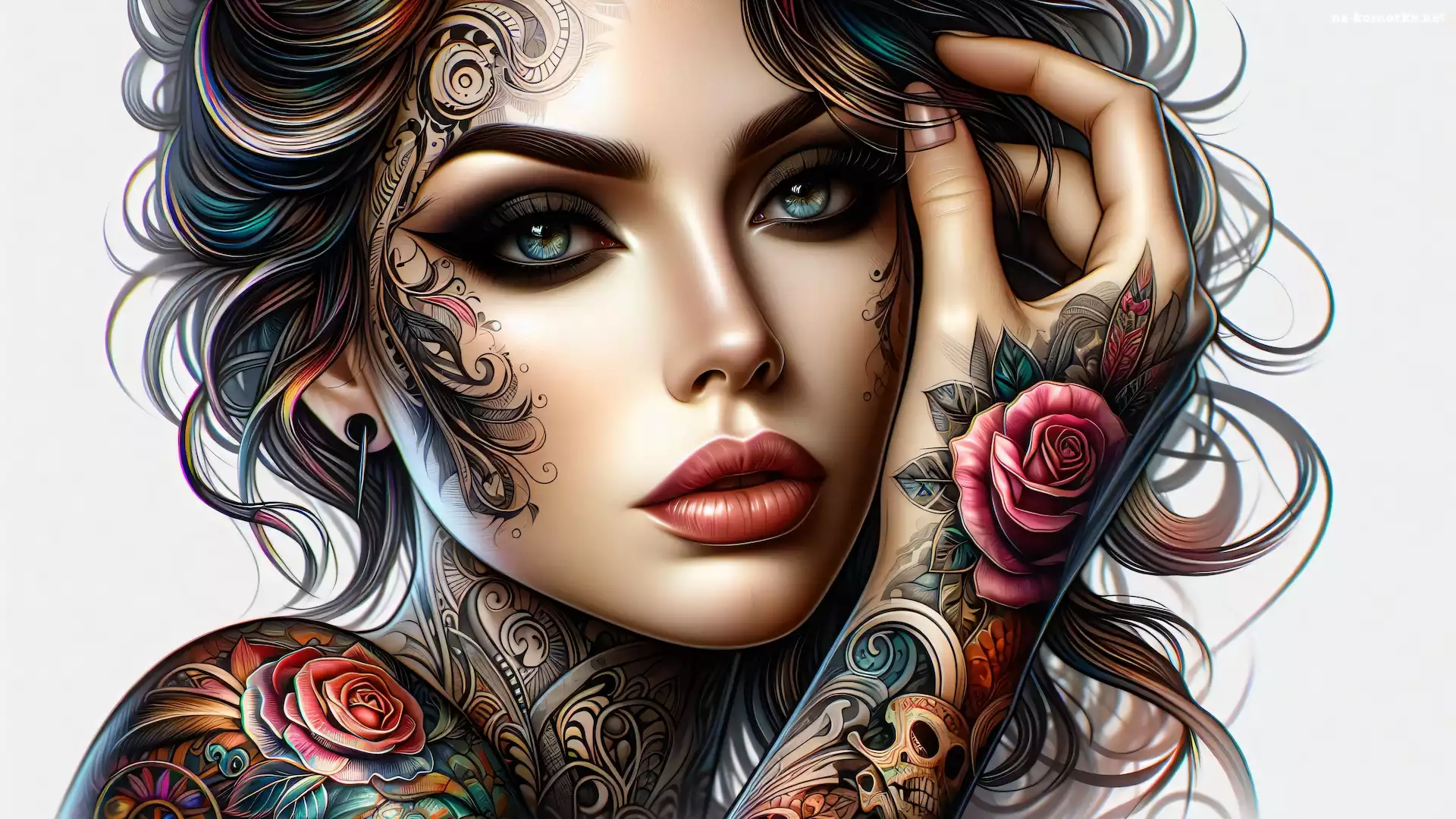 Makijaż, Grafika, Kobieta, Tatuaż na Komórkę