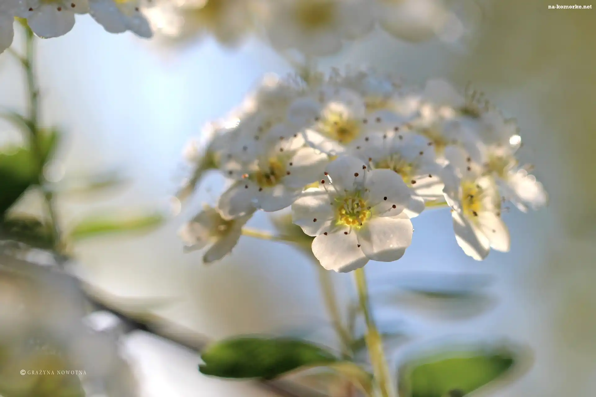 Tawuła, Krzew, Białe, Kwiaty na Komórkę