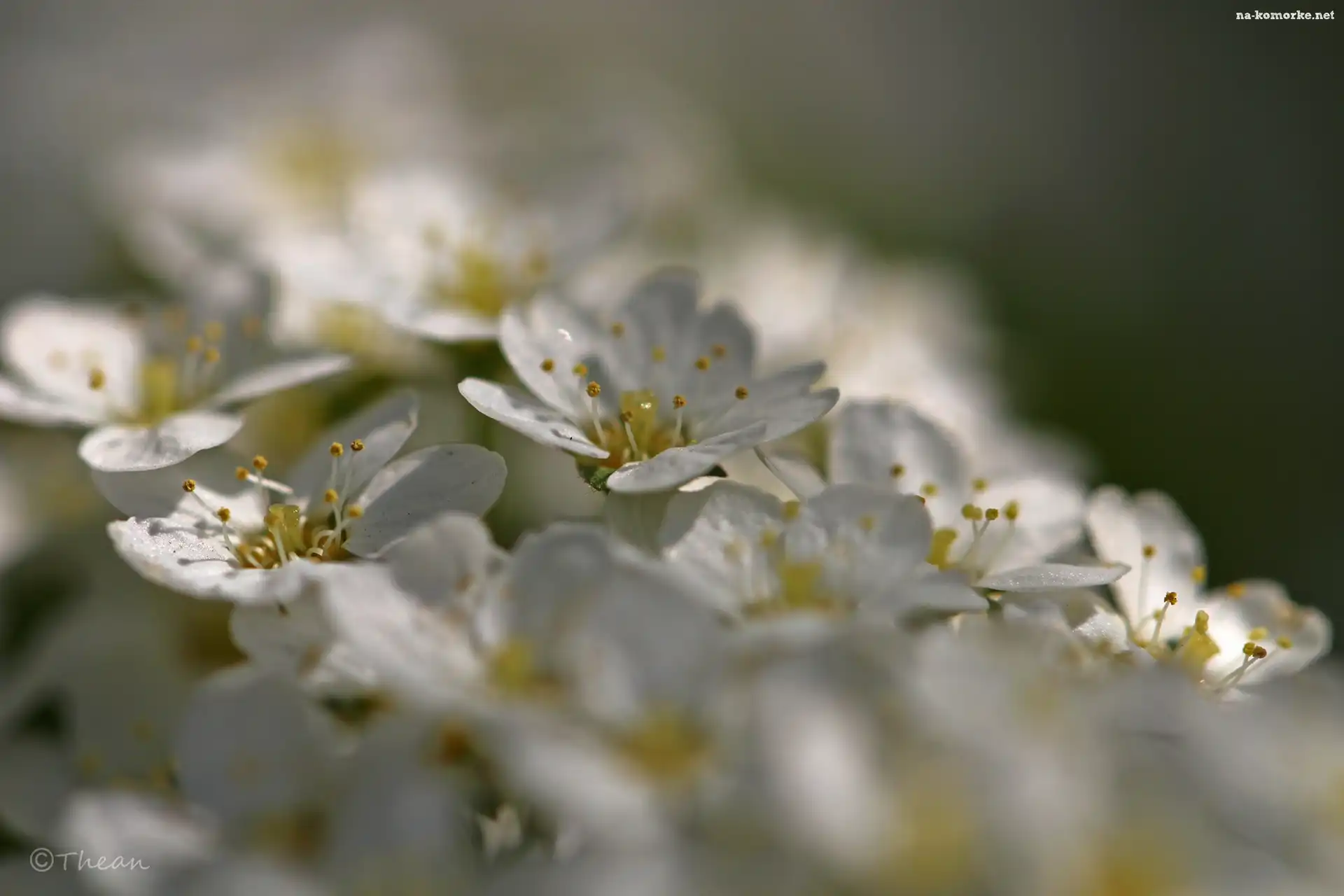 Tawuła Szara, Kwiaty, Krzew, Białe na Komórkę