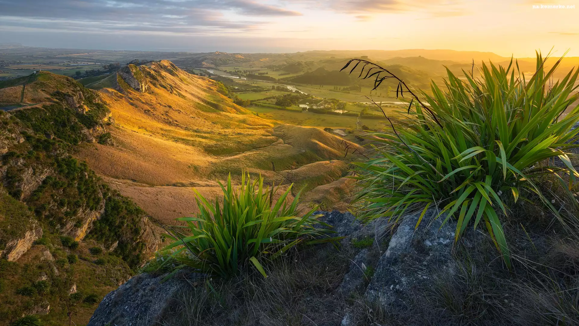 Góry, Dolina, Wzgórza, Nowa Zelandia, Wschód słońca, Rośliny, Te Mata Peak, Region Hawkes Bay na Komórkę |