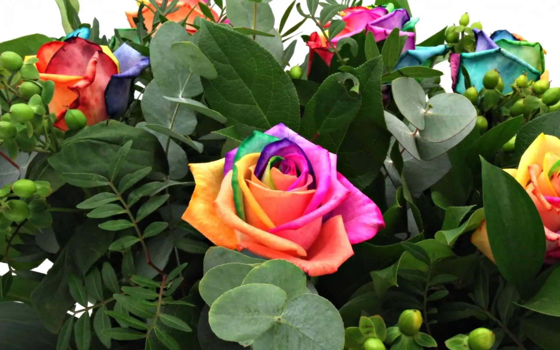 Tęczy, Kwiaty, Bukiet, Róże, Kolory na Komórkę