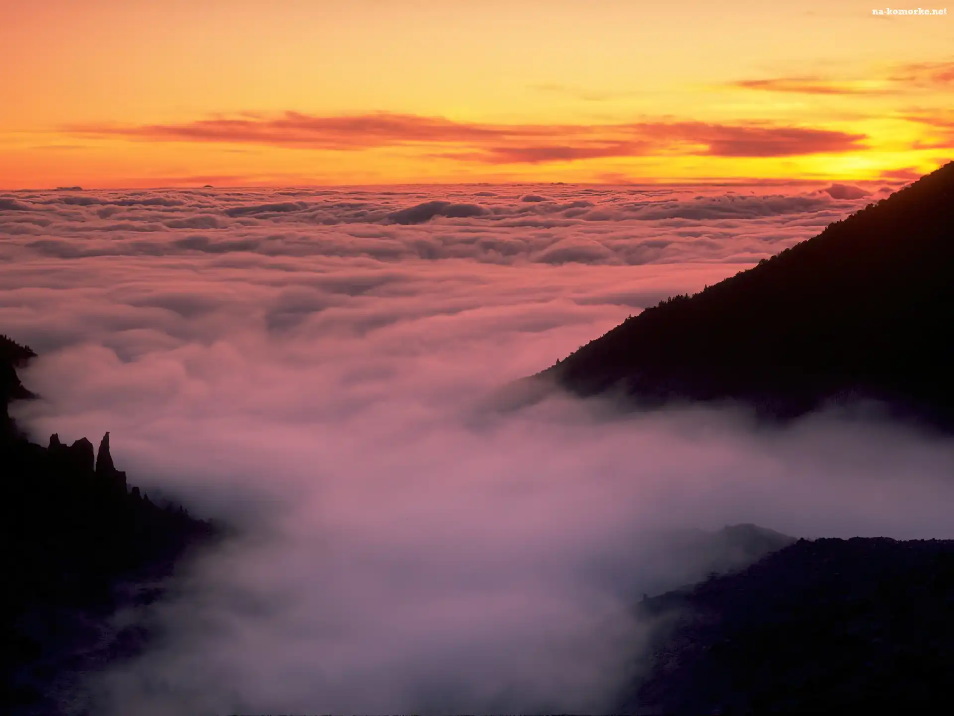 Teneryfa, Zachód, Słońca, Mgła, Góry na Komórkę