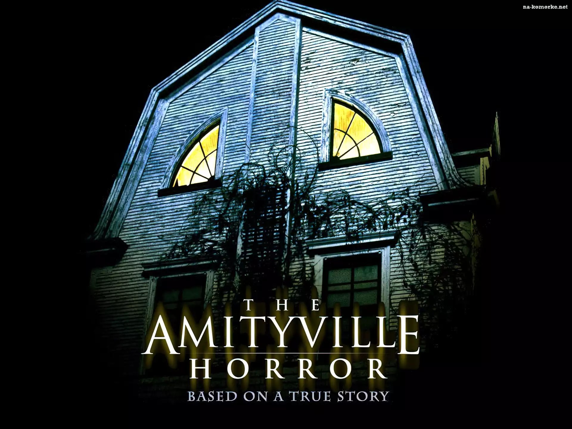 The Amityville Horror, napis, dom, noc na Komórkę