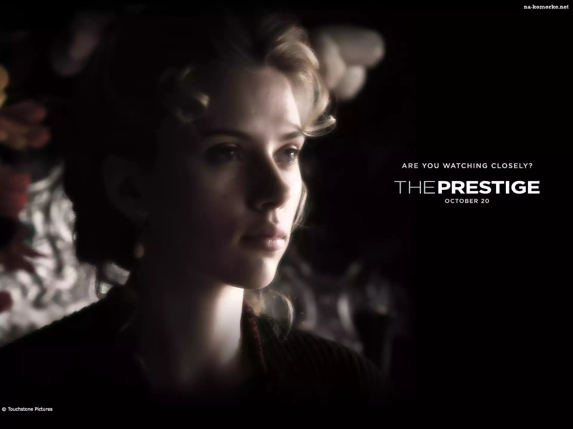 napis, The Prestige, Scarlett Johansson, twarz, loki na Komórkę