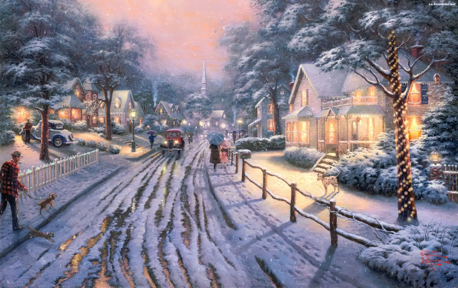 Thomas Kinkade, Zima, Ulica, Miasteczko, Malarstwo na Komórkę