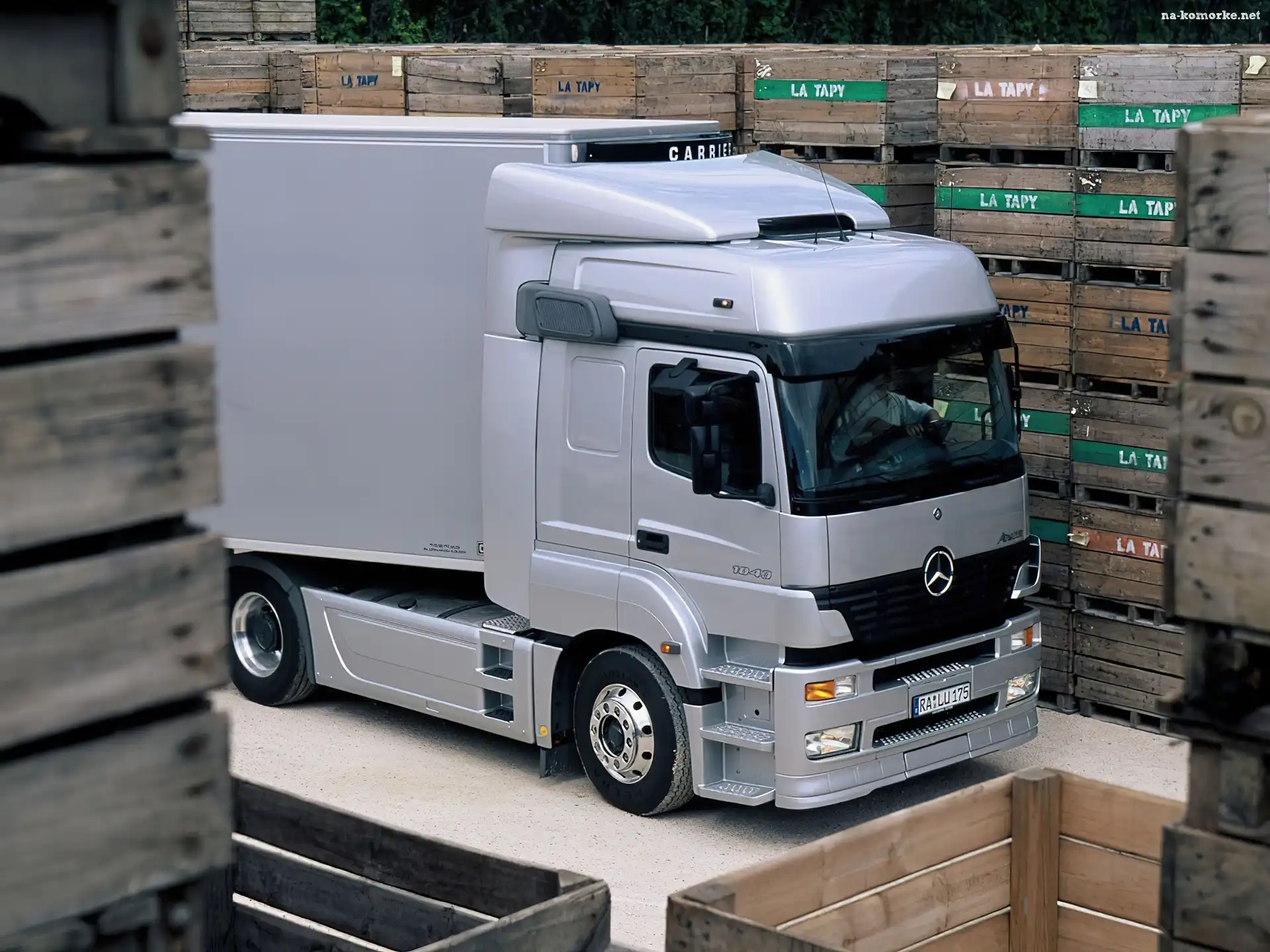 Srebny TIR Mercedes na Komórkę