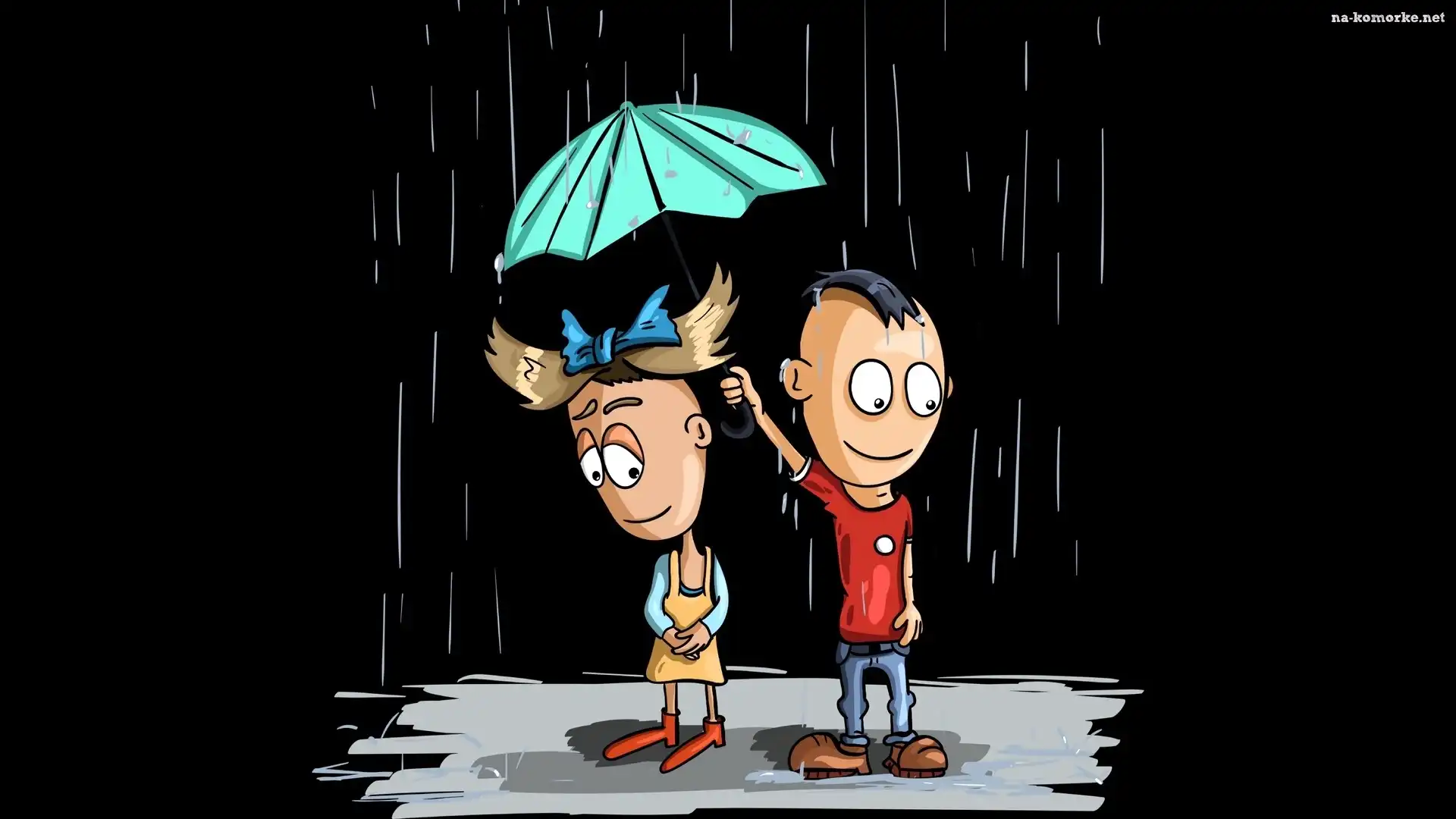 Dziewczyna, Grafika 2D, Człowiek, Chłopak, Parasolka, Deszcz, Czarne tło na Komórkę