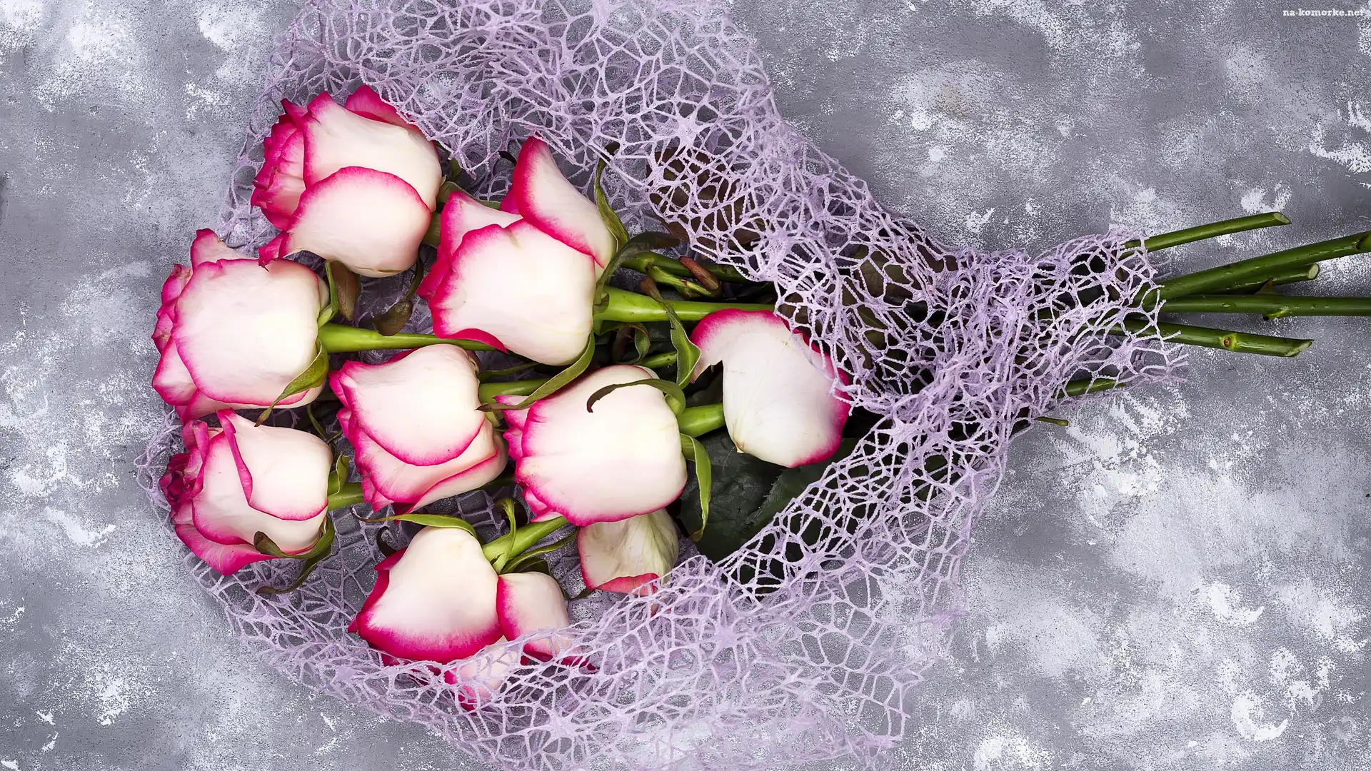 Tło, Róże, Biało-różowe, Bukiet, Szare na Komórkę