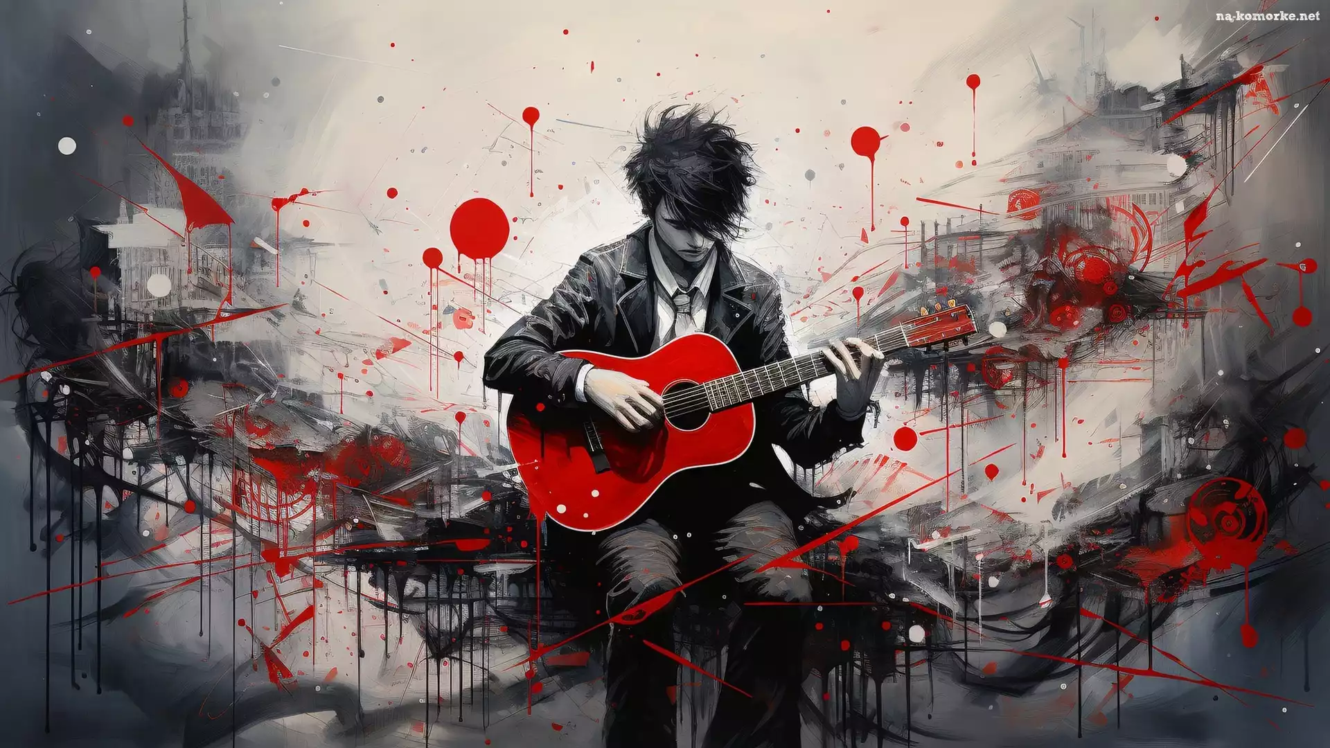 Rozmazane, Grafika, Gitara, Tło, Młodzieniec, Chłopiec na Komórkę