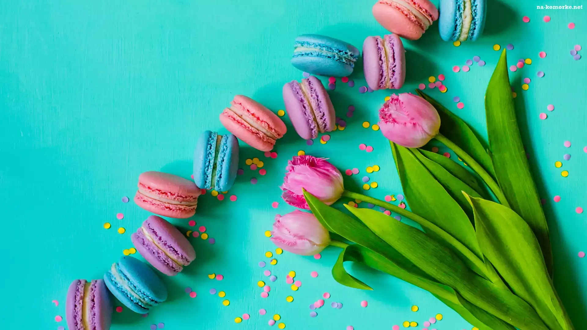 Makaroniki, Kolorowe, Kwiaty, Tło, Tulipany, Ciasteczka, Różowe na Komórkę