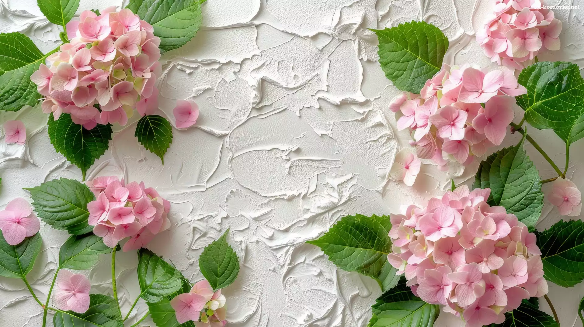 Kompozycja, Różowe, Liście, Tło, Hortensja, Kwiaty na Komórkę
