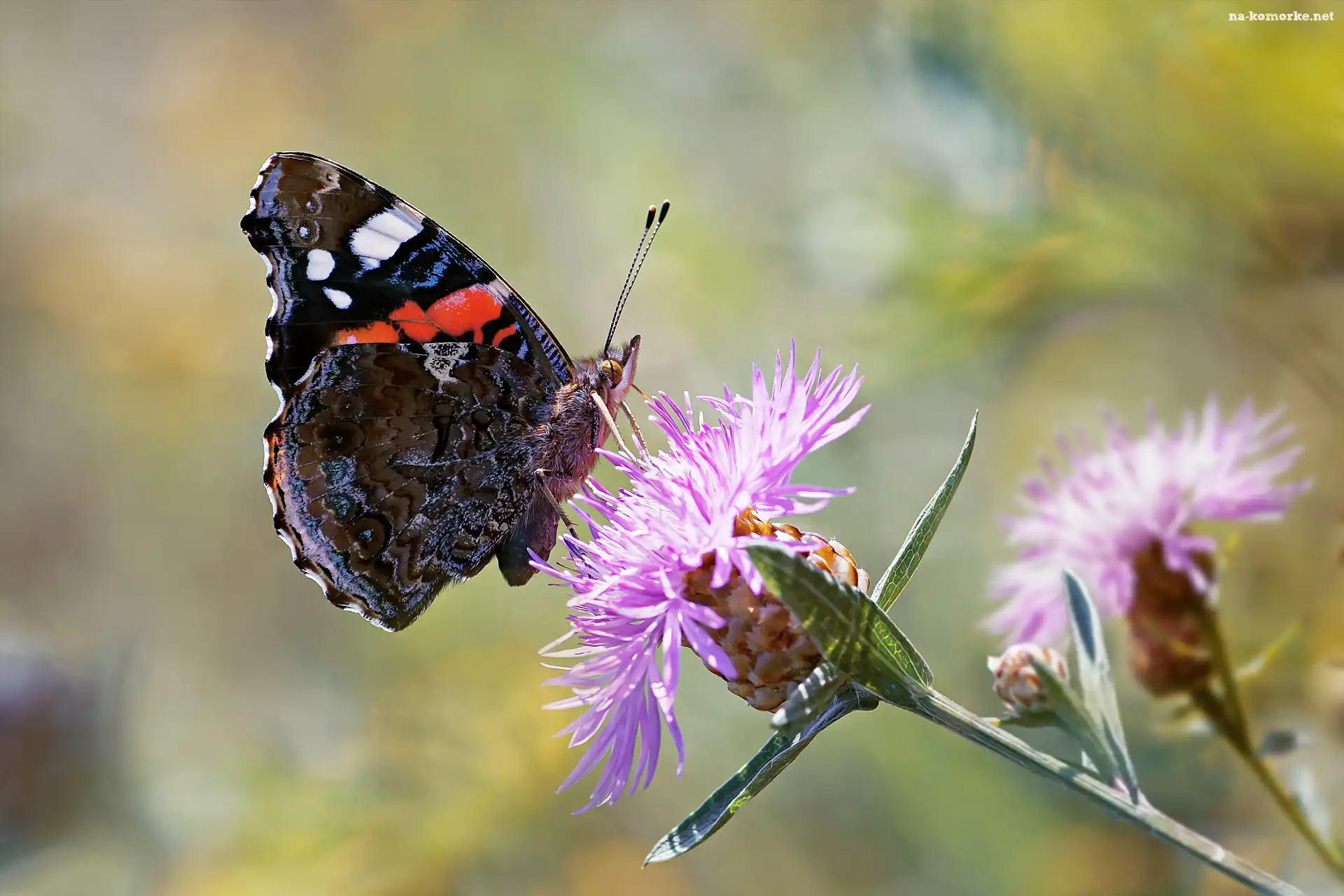 Tło, Motyl, Rusałka admirał, Kwiaty, Rozmyte na Komórkę