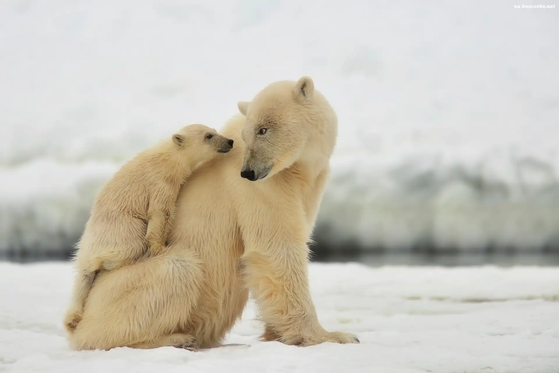 Tło, Niedźwiedzica, Młode, Spojrzenie, Rozmyte na Komórkę