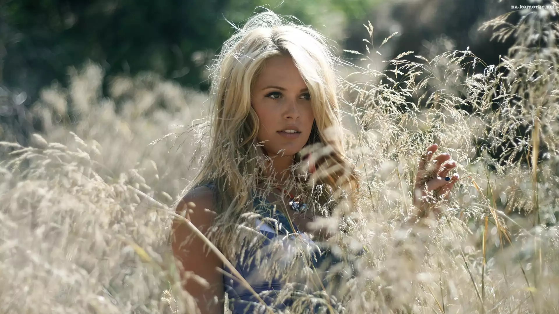 Traw, Kobieta, Blondynka, Wśród, Wysokich na Komórkę