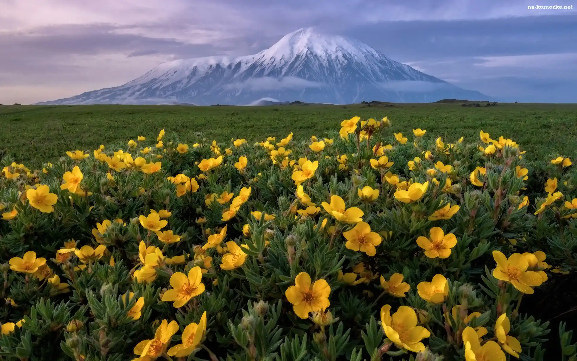 Ostry Tołbaczik, Góra, Kwiaty, Łąka, Rosja, Stratowulkan, Kamczatka, Żółte, Trawa na Komórkę