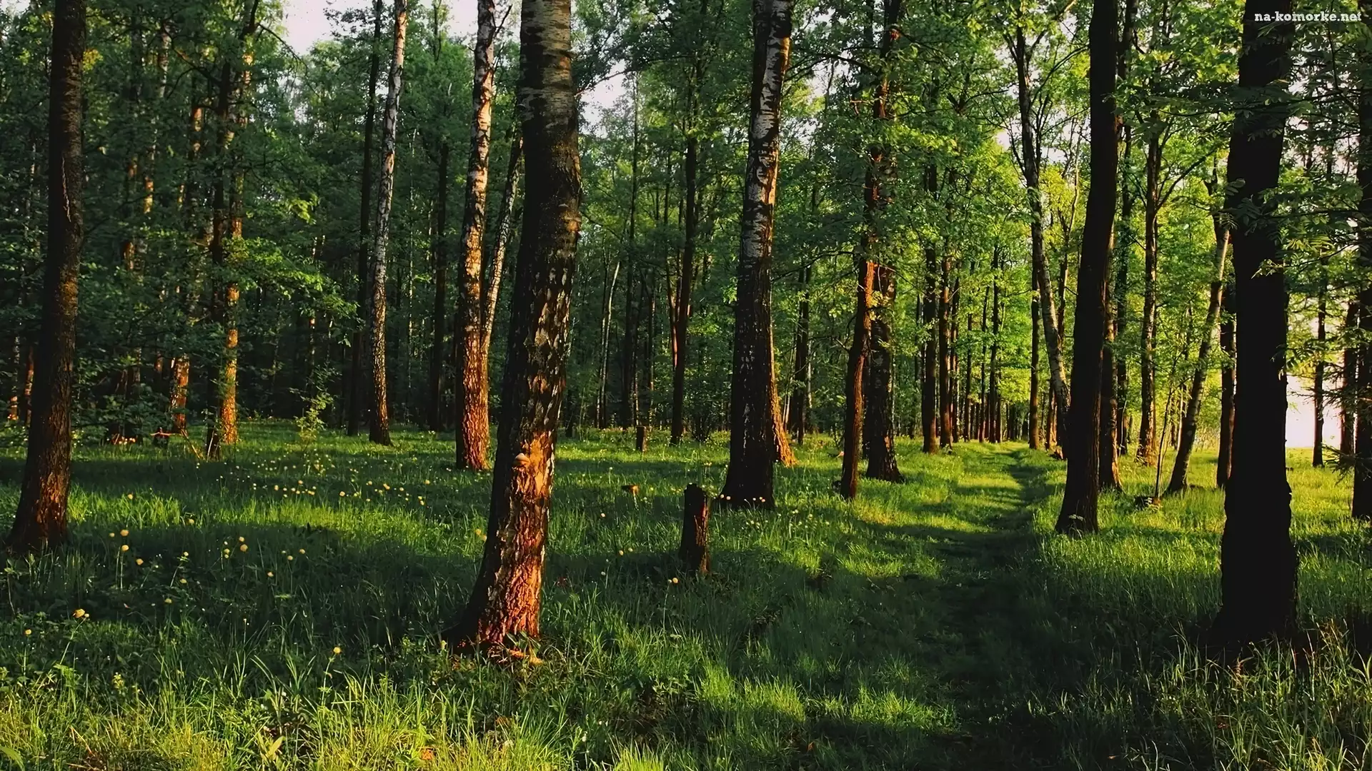 Trawa, Las, Drzewa, Brzozy, Ścieżka na Komórkę