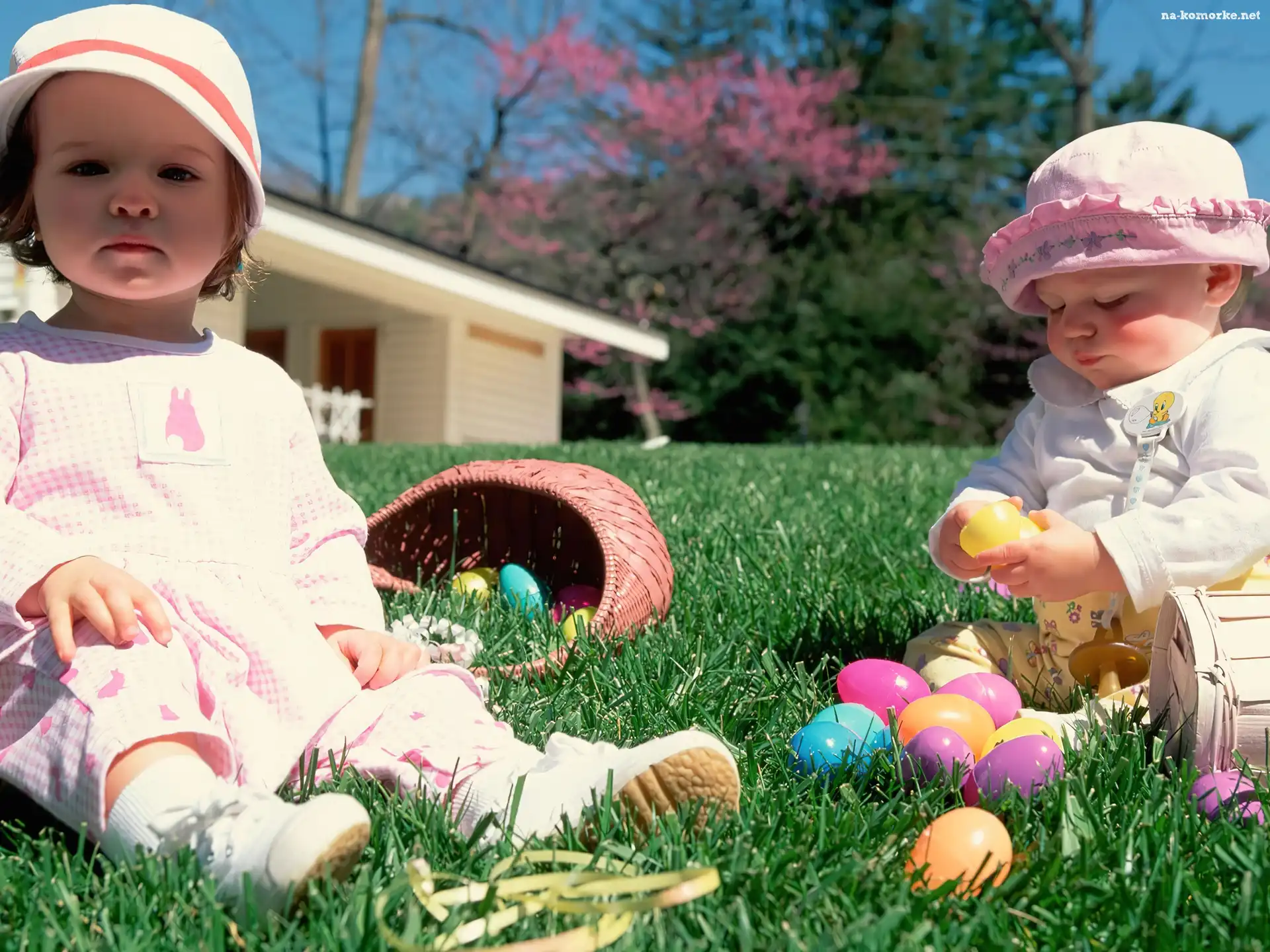 Dzieci, Trawa, Wielkanoc na Komórkę