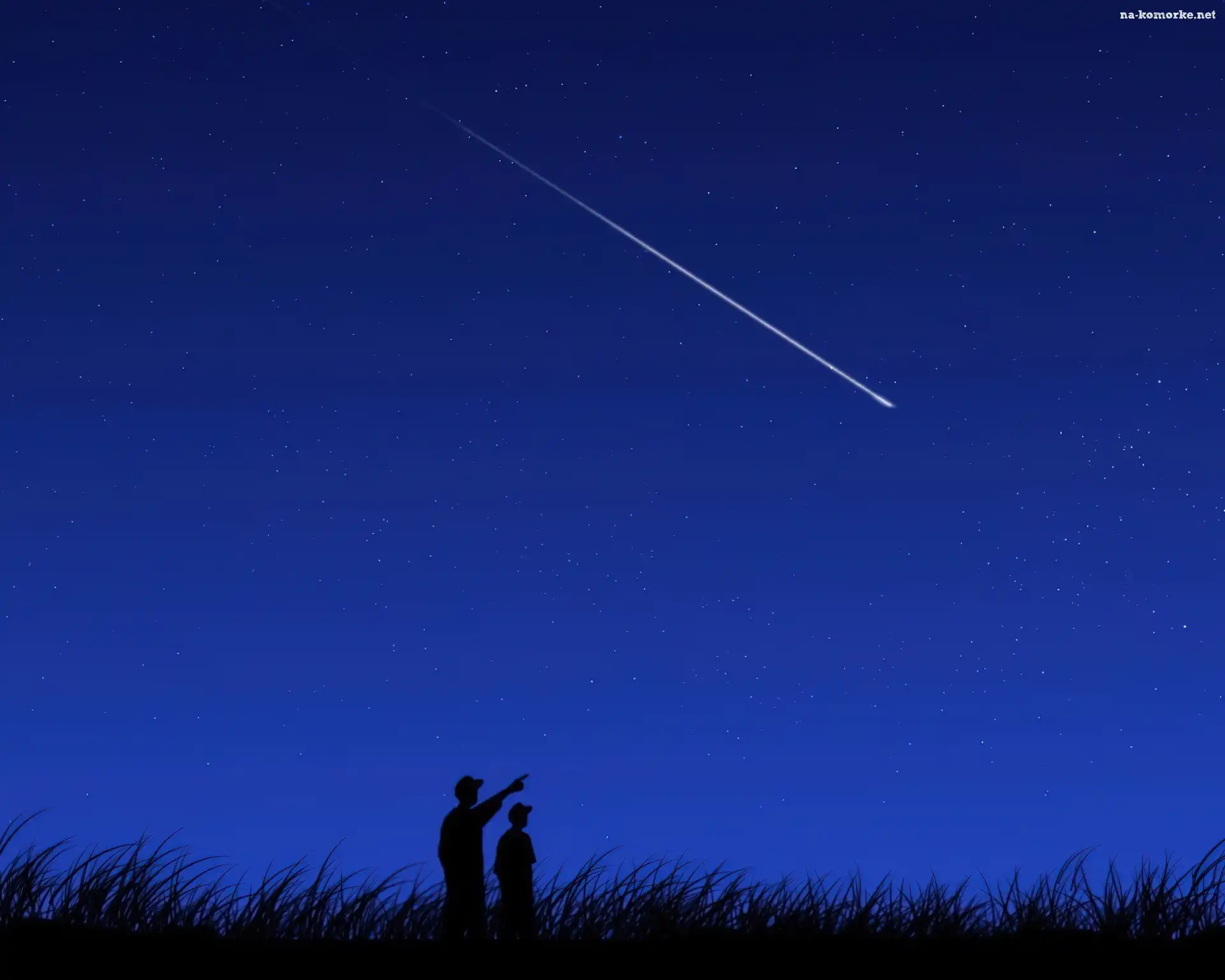 Trawa, Niebo, Kometa, Gwiazdy, Ludzie na Komórkę