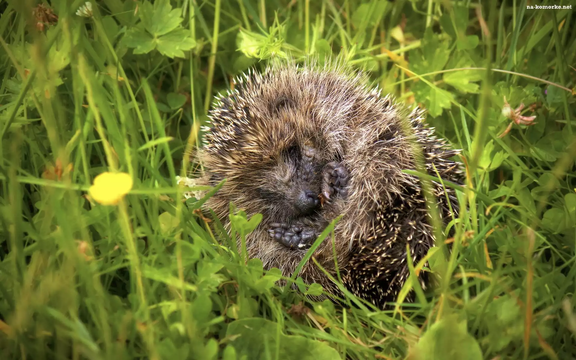 Łąka, Jeżyk, Trawa, Śpiący na Komórkę