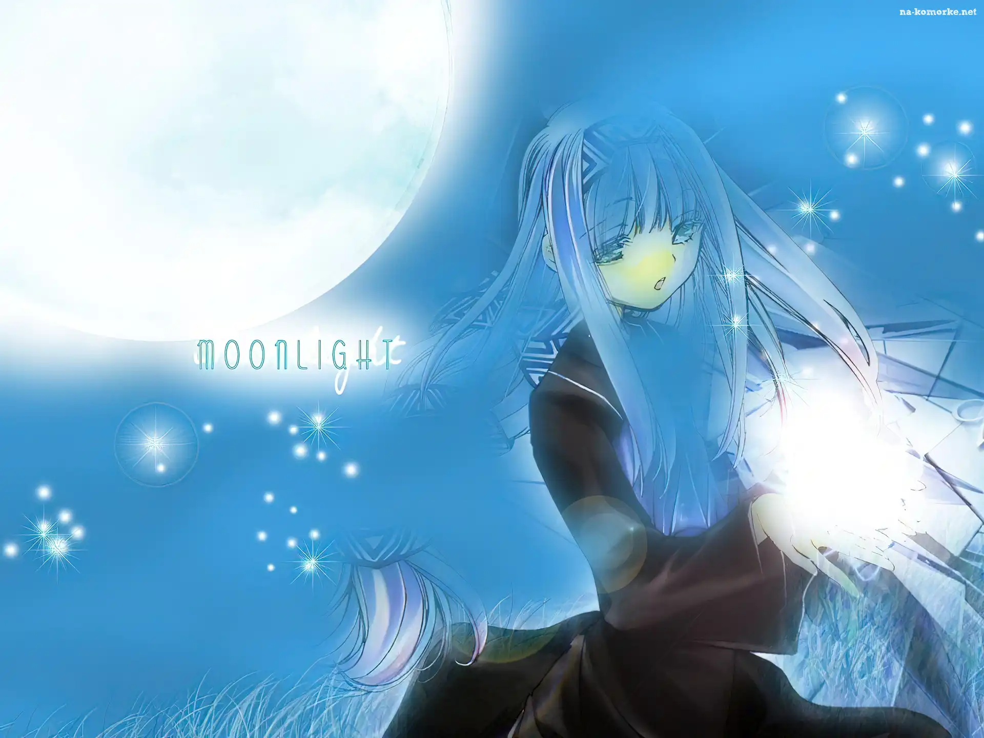 trawa, Erementar Gerad, gwiazdy, księżyc, dziewczynka na Komórkę