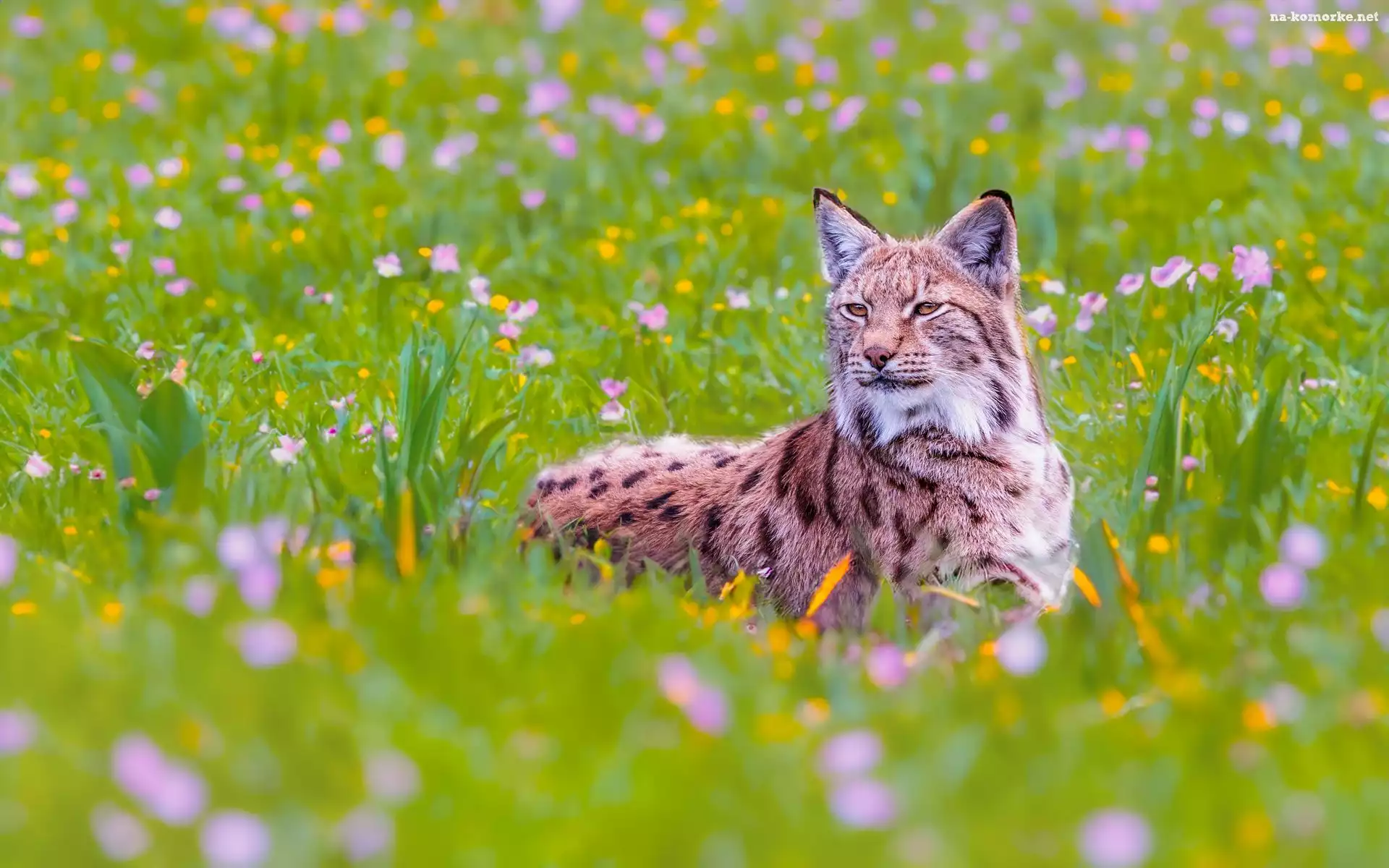 Kwiaty, Łąka, Ryś, Trawa na Komórkę