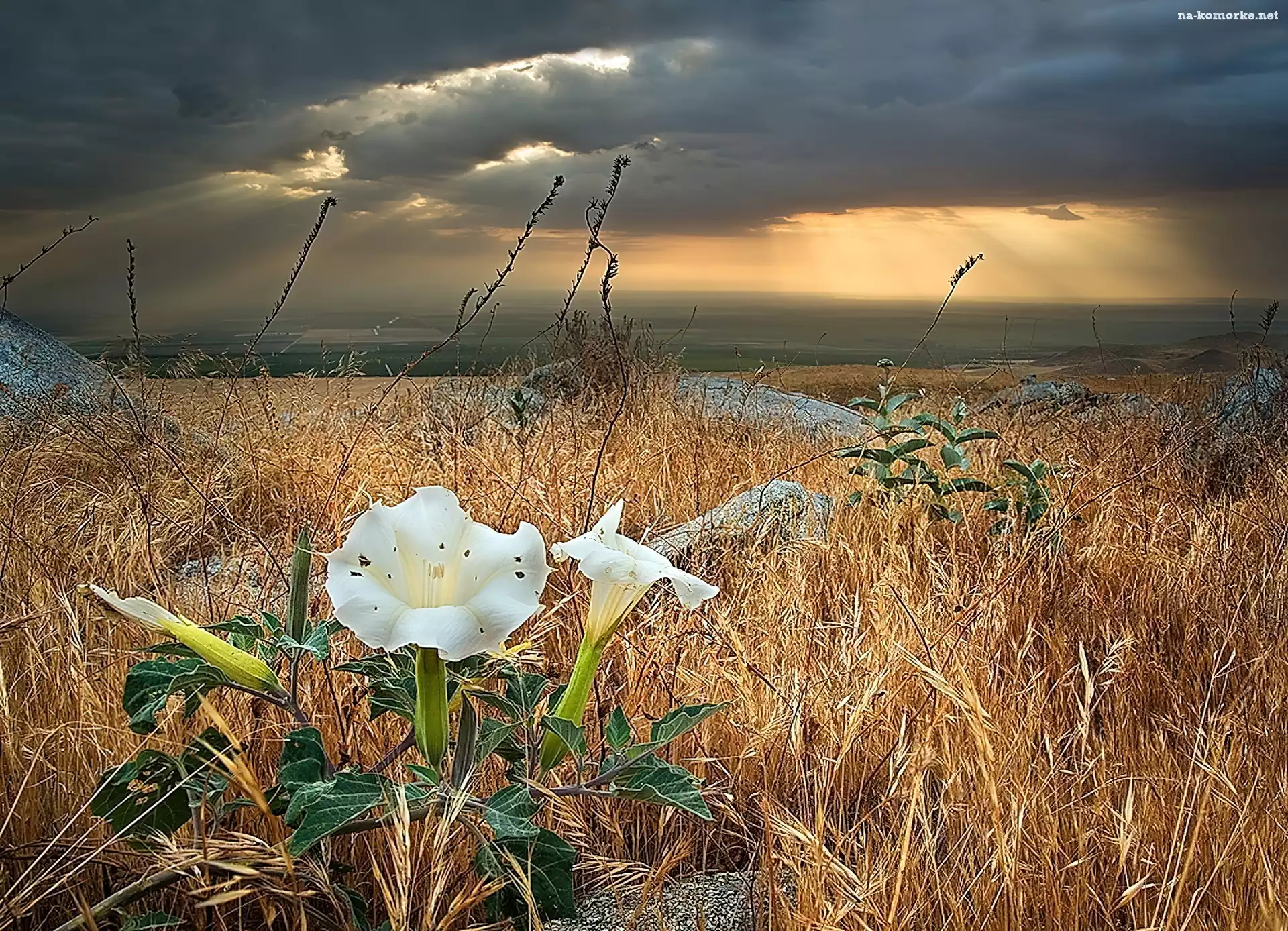 Trawa, Słońca, Kwiaty, Promienie na Komórkę