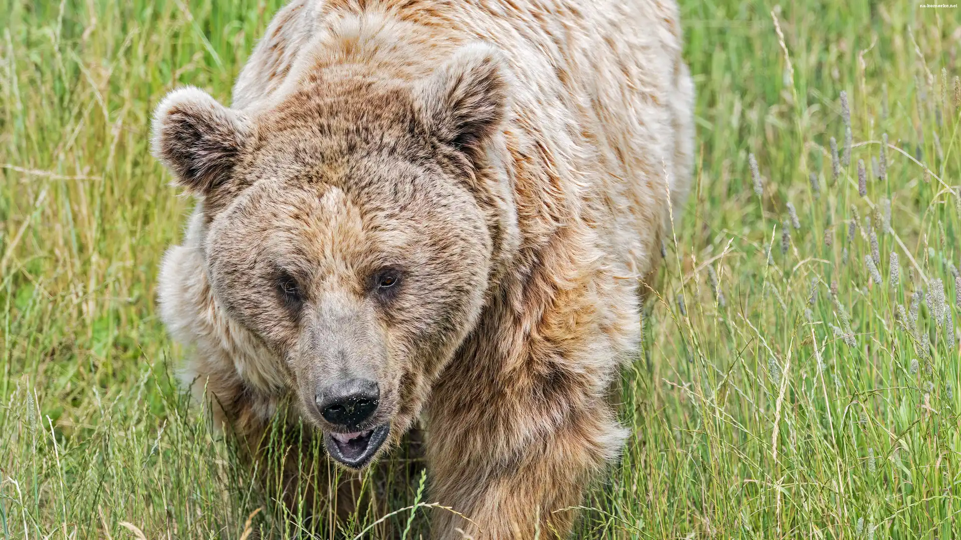 Niedźwiedź brunatny, Zbliżenie, Trawa na Komórkę