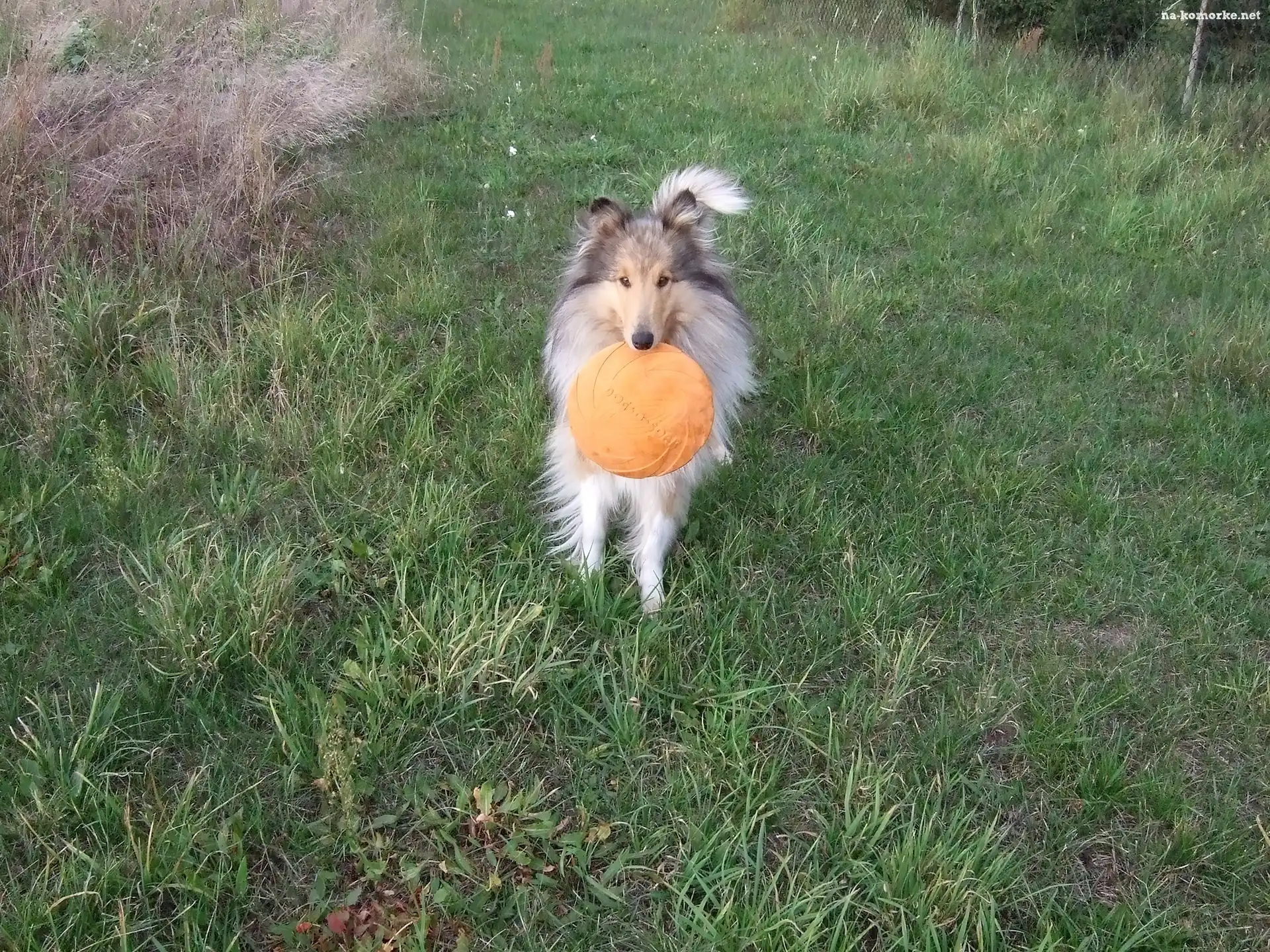Pies, trawa, frizbee na Komórkę