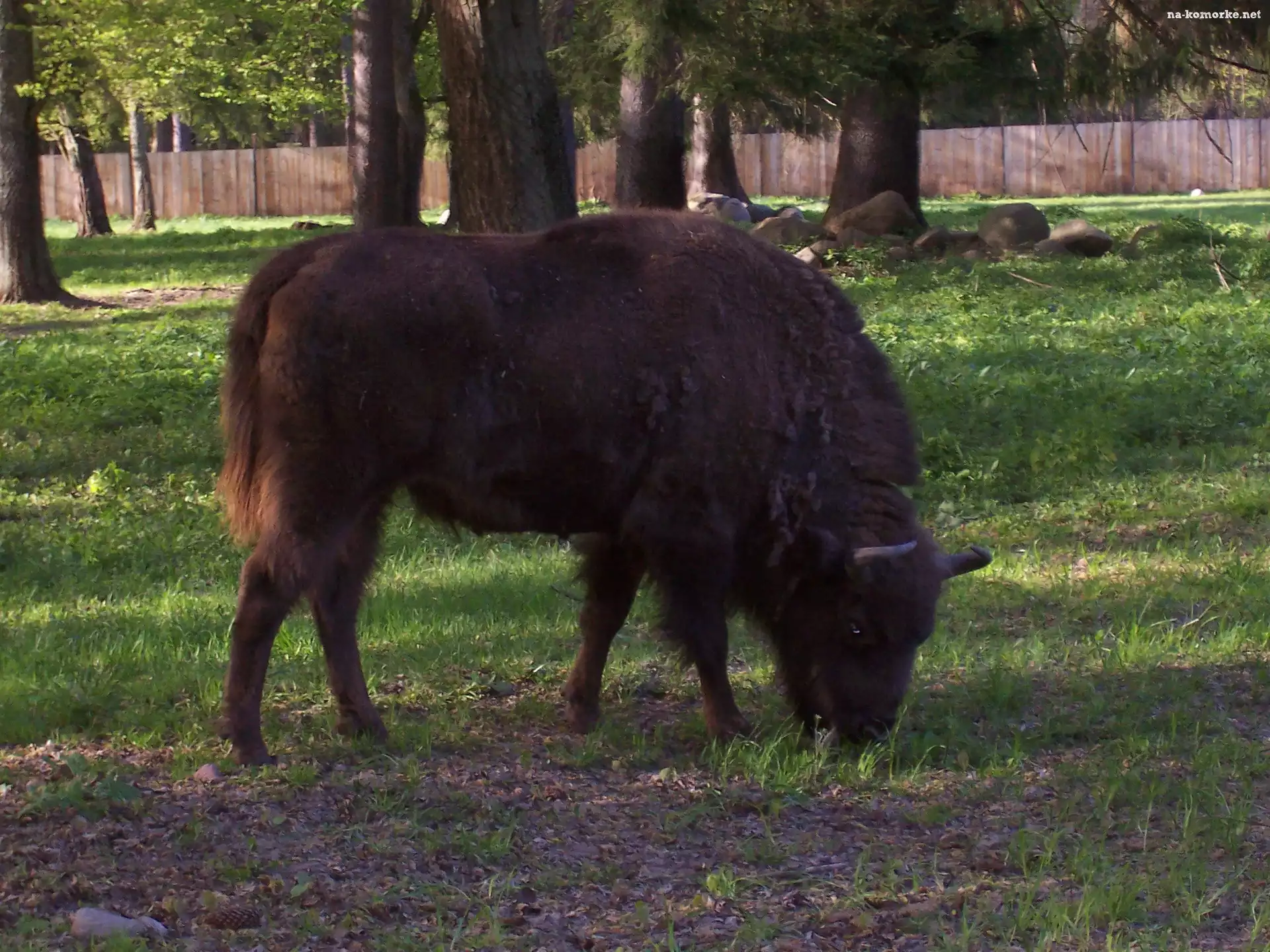 Żubr, trawa, kamienie na Komórkę