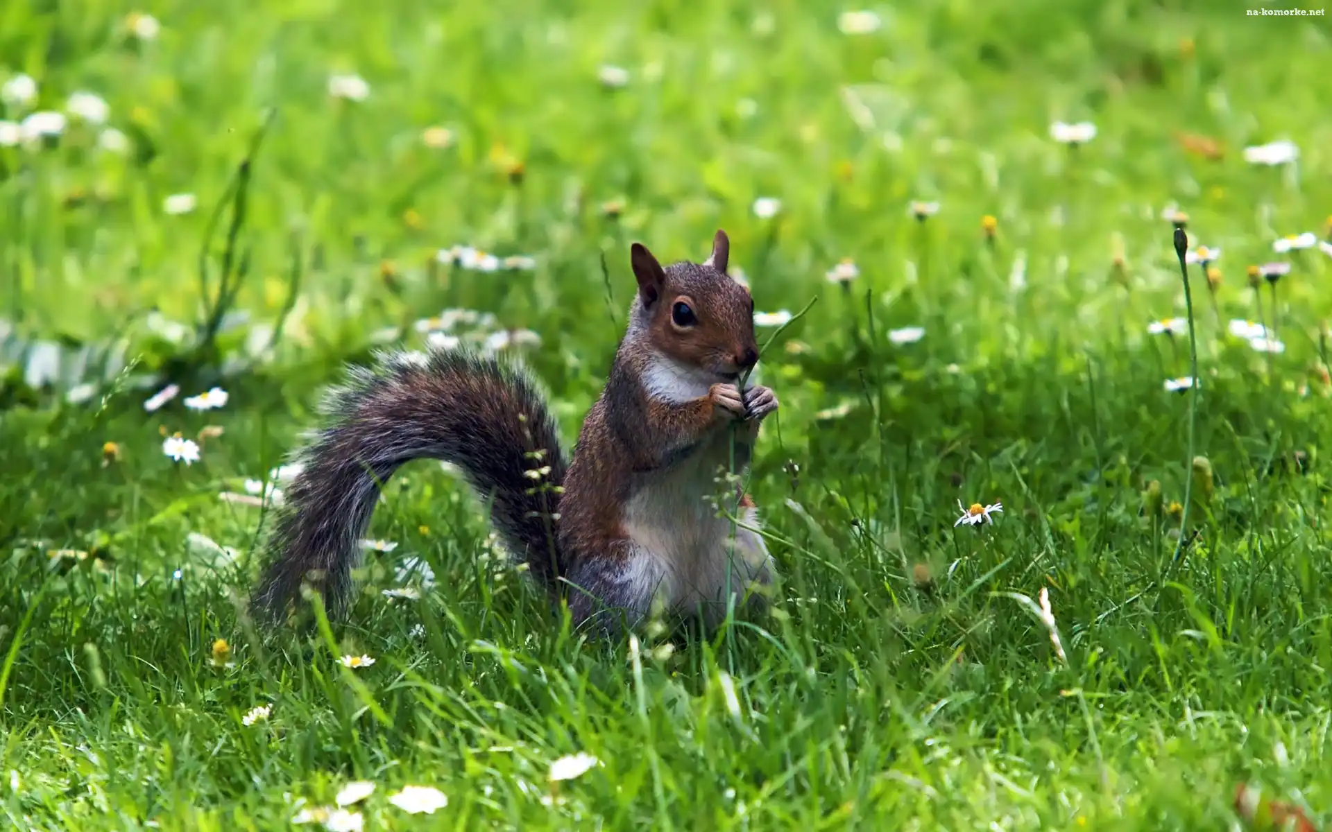 Wiewiórka, Trawa, Kwiaty na Komórkę