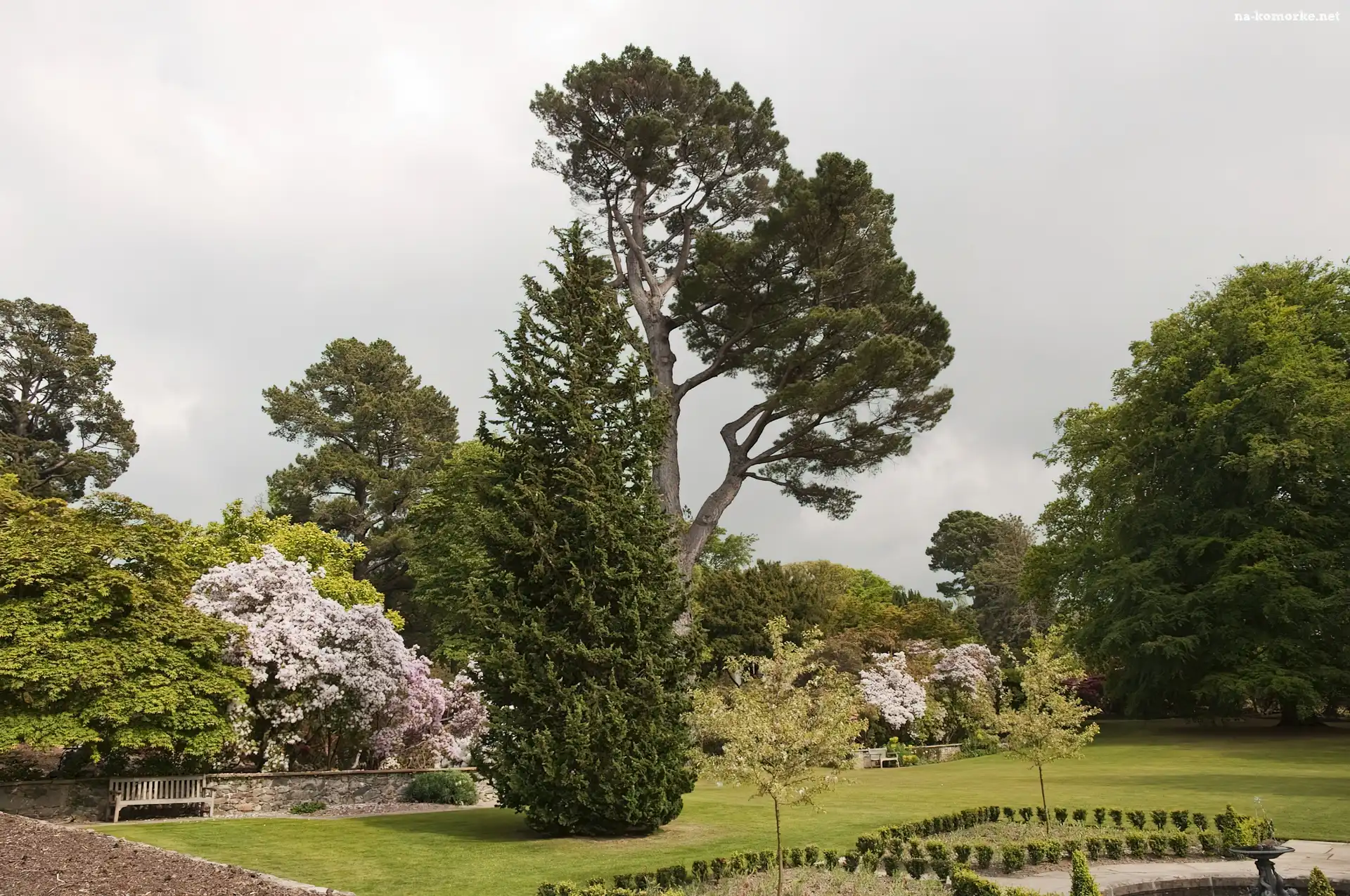 Trawnik, Park, Drzewa, Kwitnące, Krzewy na Komórkę