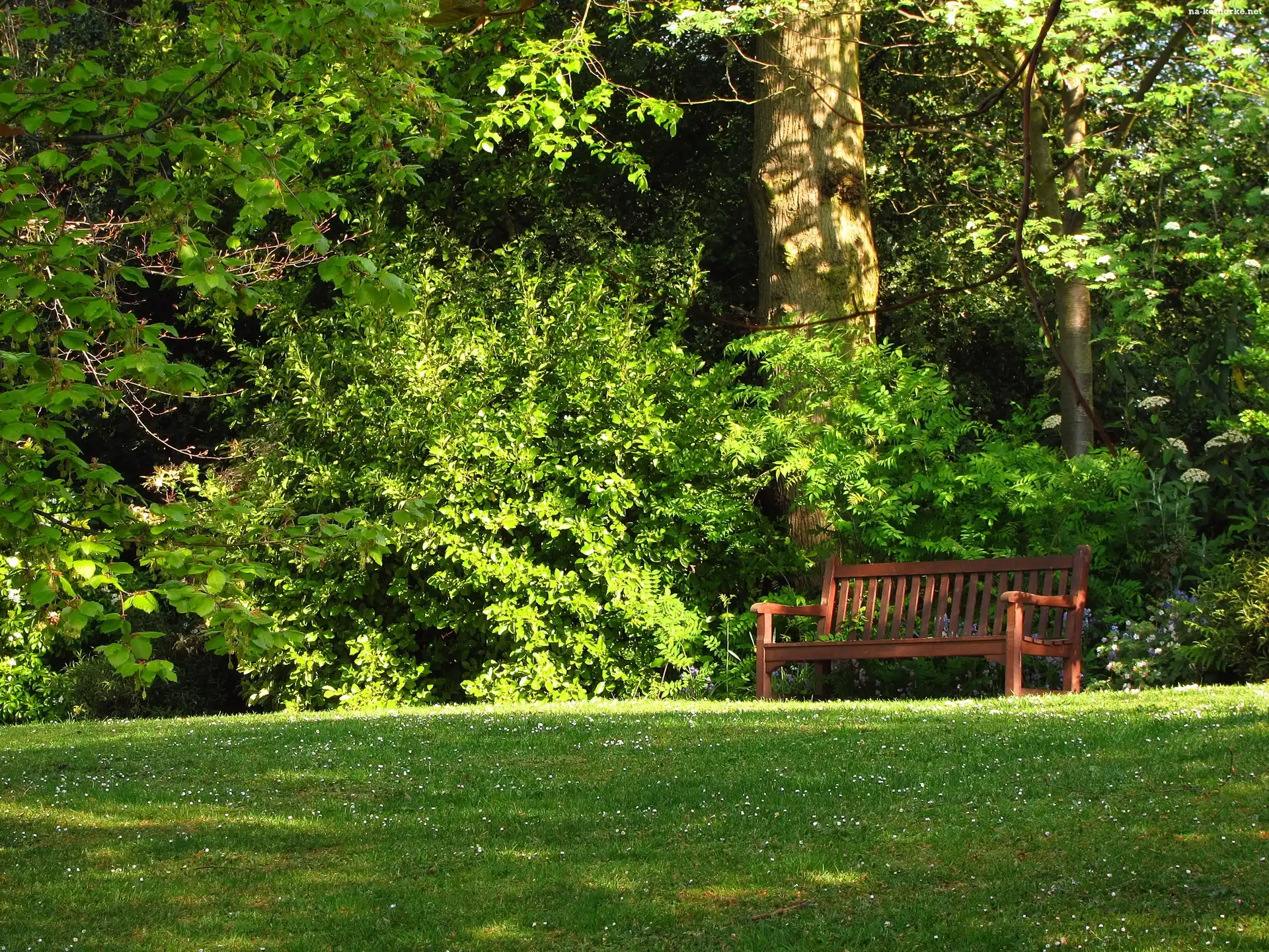 Ogród, Trawnik, Ławka na Komórkę
