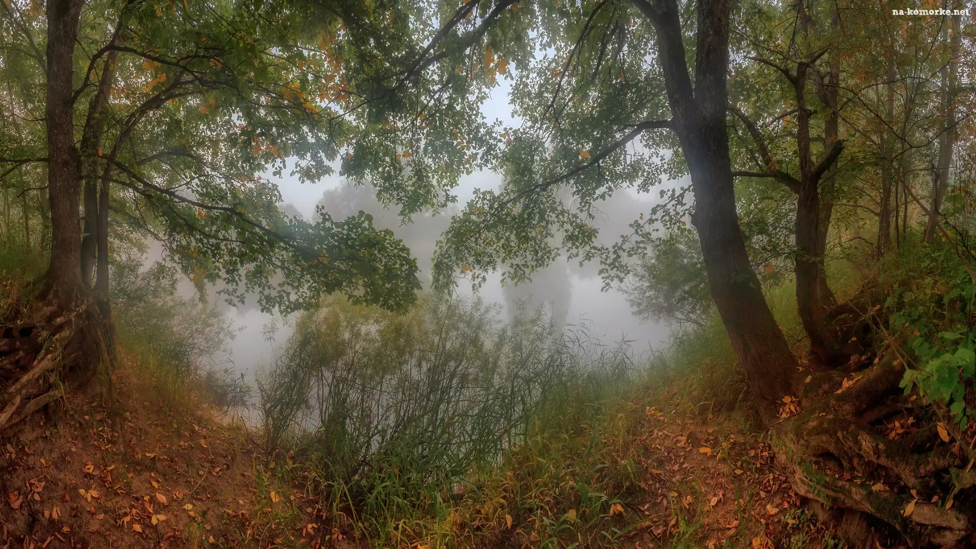 Trawy, Mgła, Las, Jezioro, Drzewa, Zamglone na Komórkę