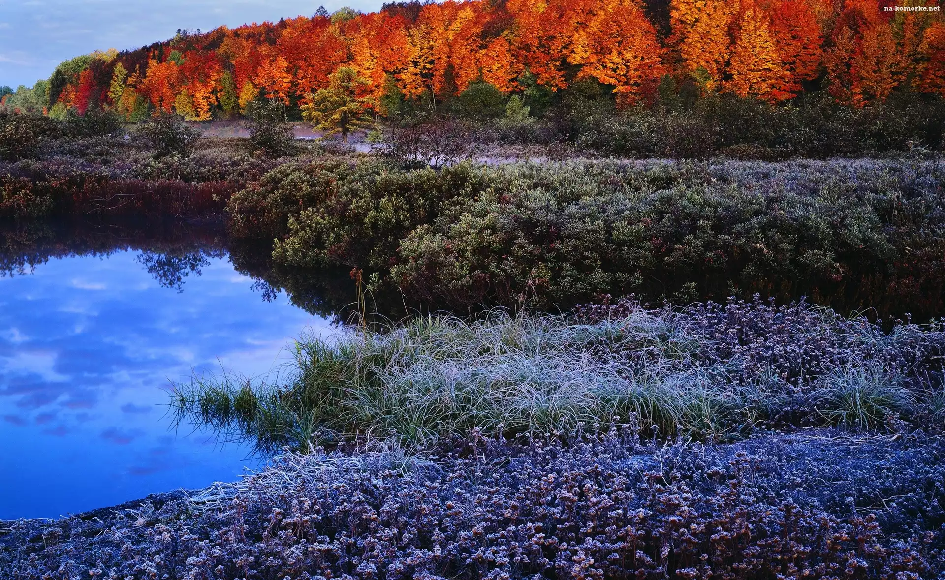 Trawy, Jezioro, Kwiaty, Las na Komórkę