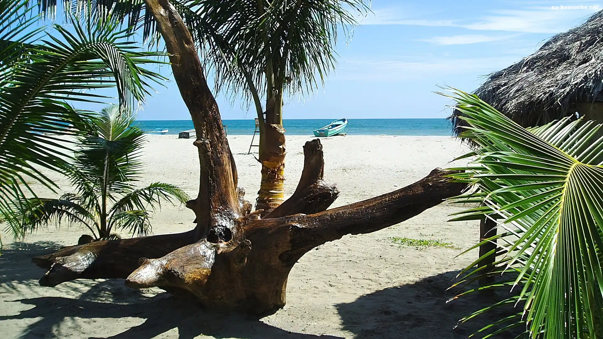 Tropik, Plaża, Palmy, Łódka, Ocean na Komórkę