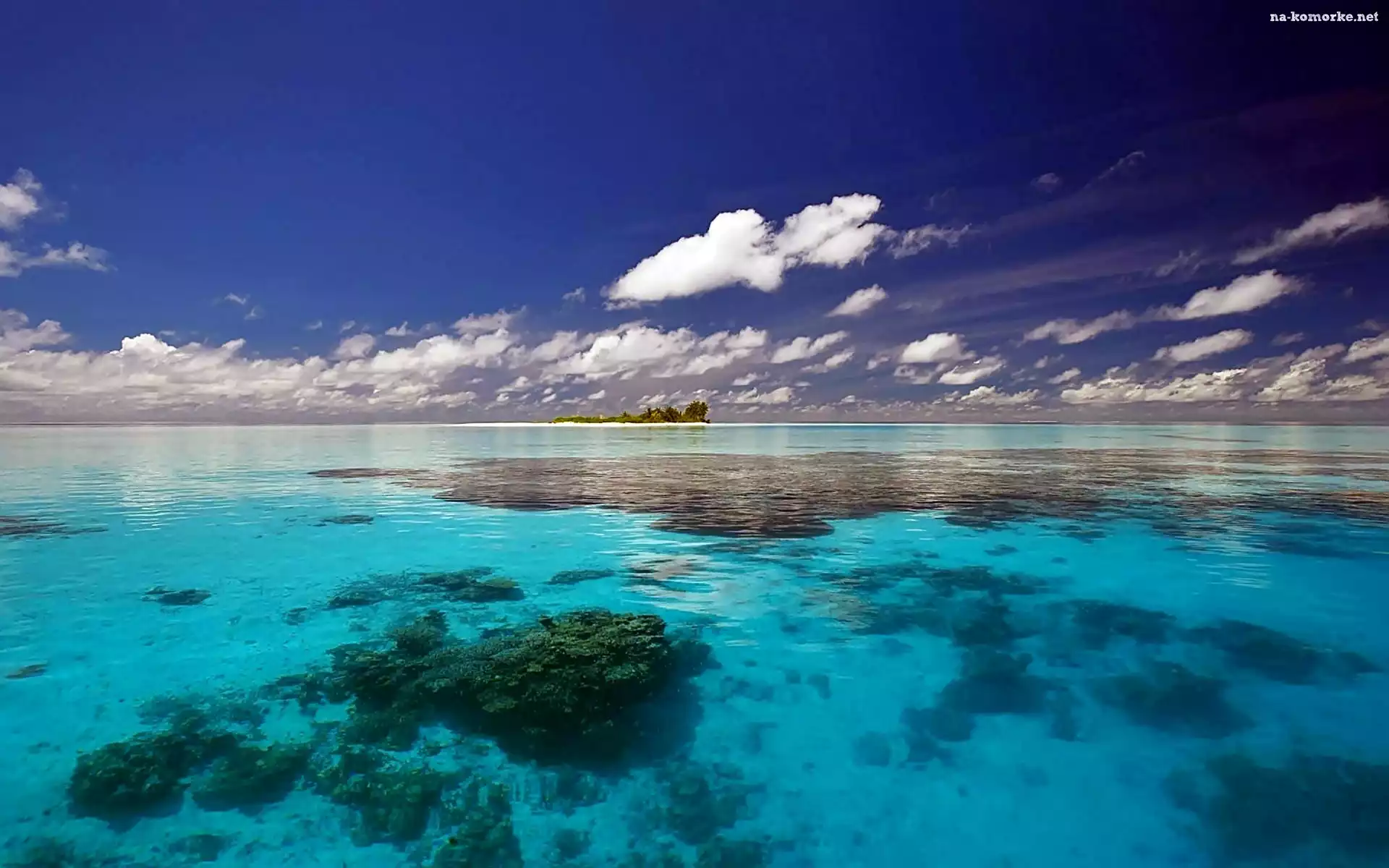 Tropiki, Chmury, Morze, Rafa Koralowa, Wysepka na Komórkę