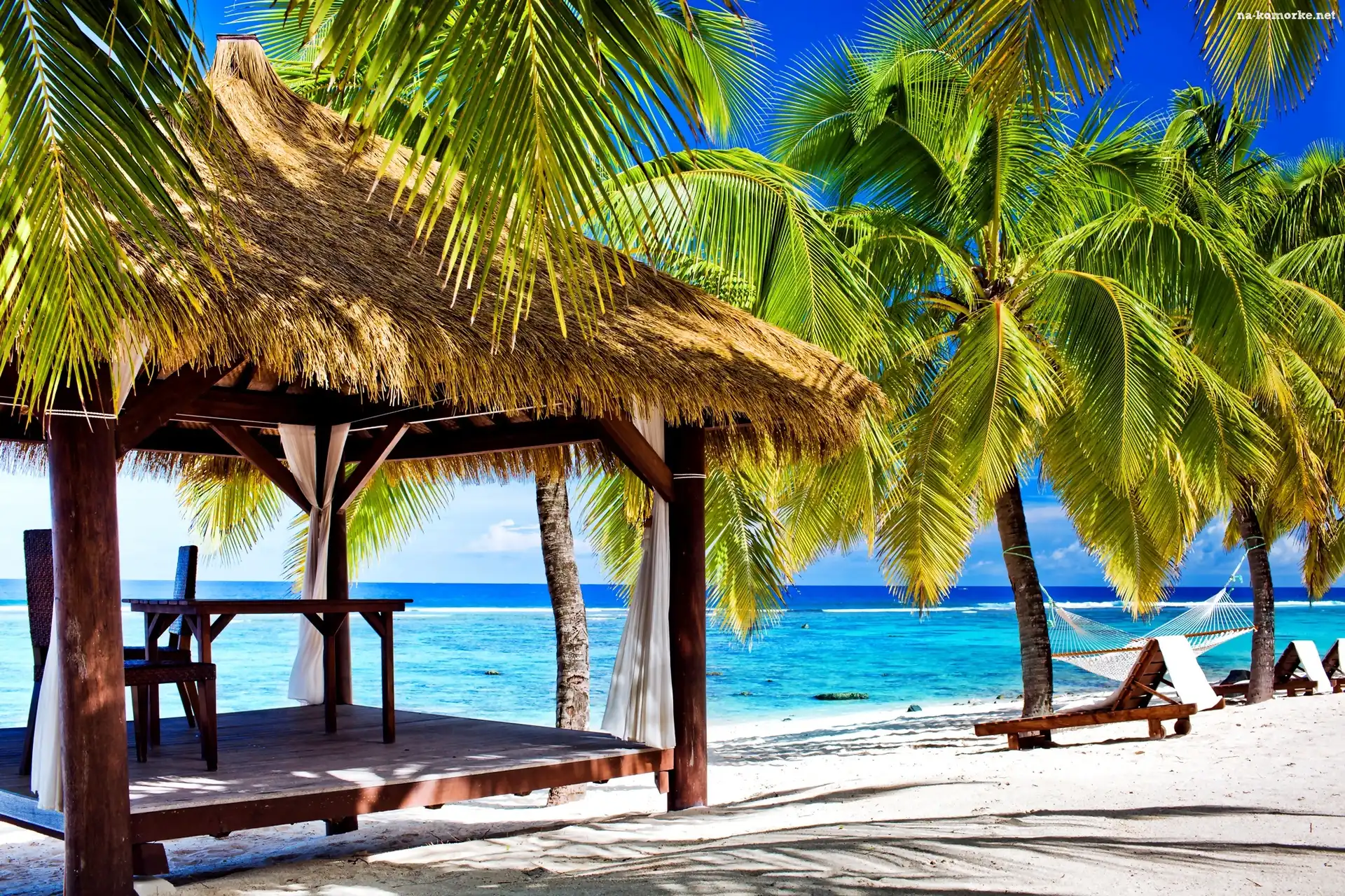 Tropiki, Pawilon, Plaża, Palmy, Ocean na Komórkę