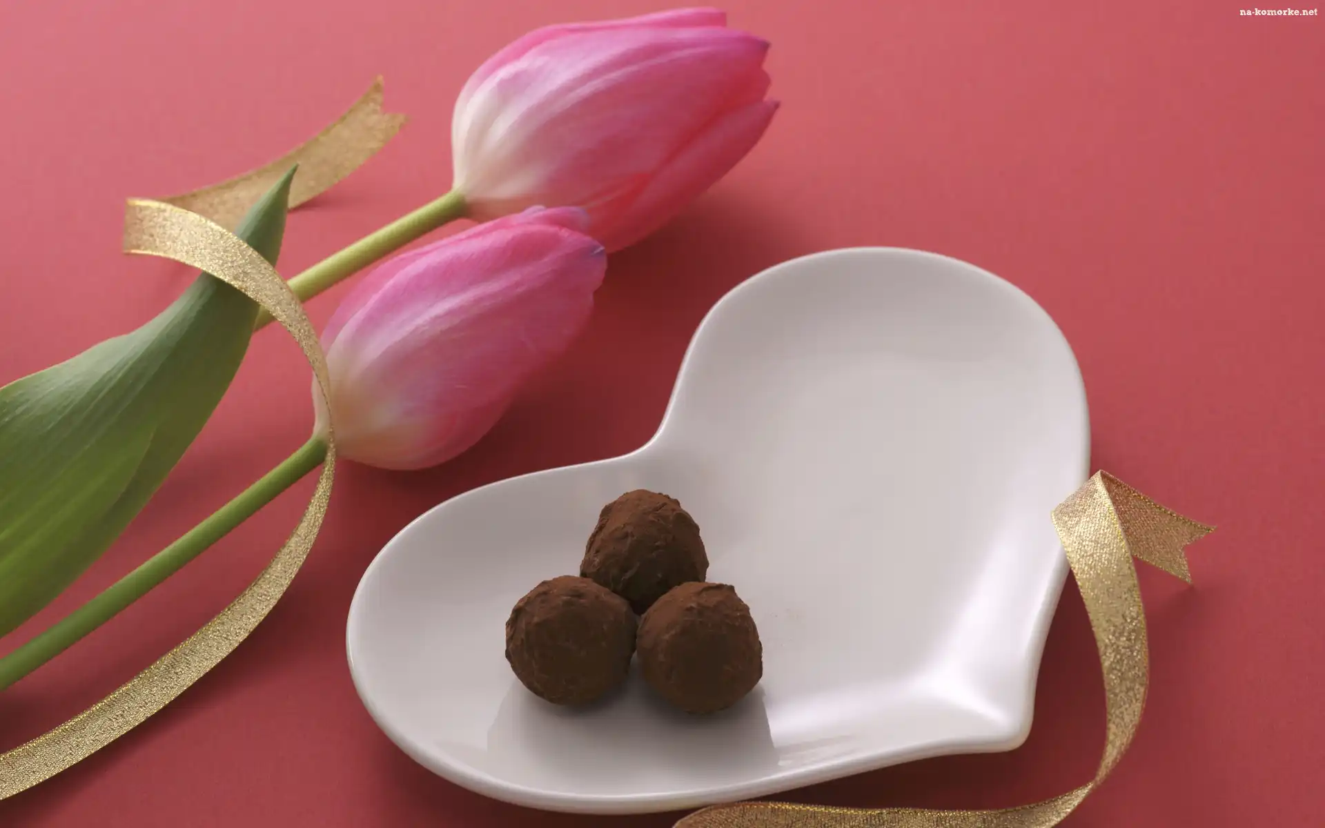 Trufle, Tulipany, Wstążka, Talerzyk, Serce na Komórkę