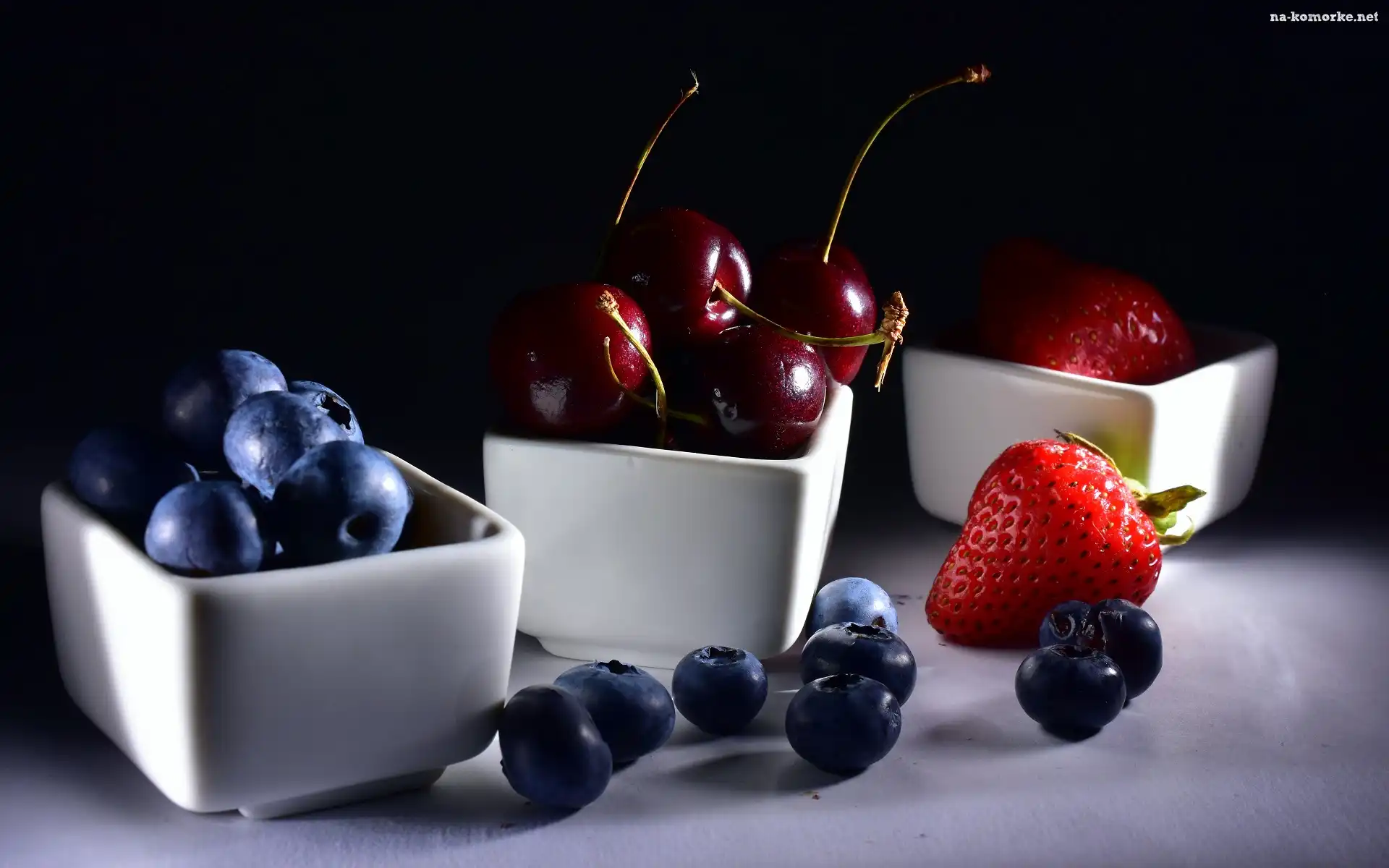 Truskawki, Miseczki, Owoce, Jagody, Czereśnie na Komórkę
