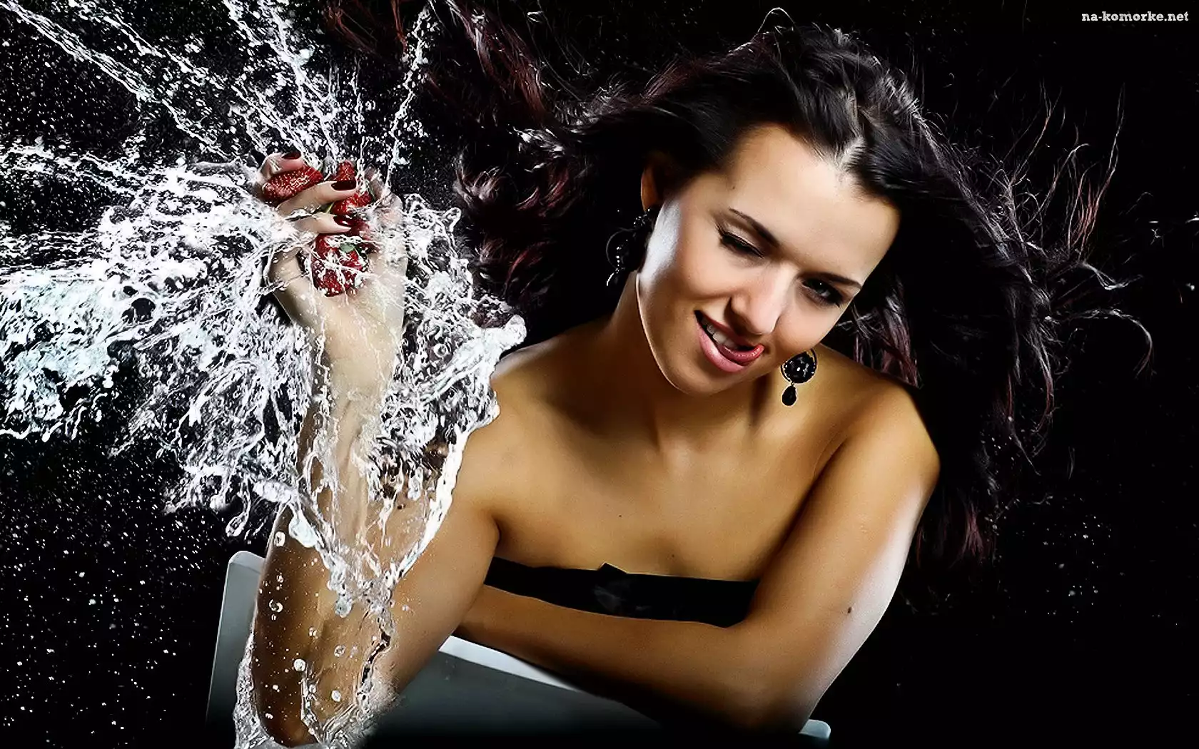 Kobieta, Truskawki, Woda na Komórkę