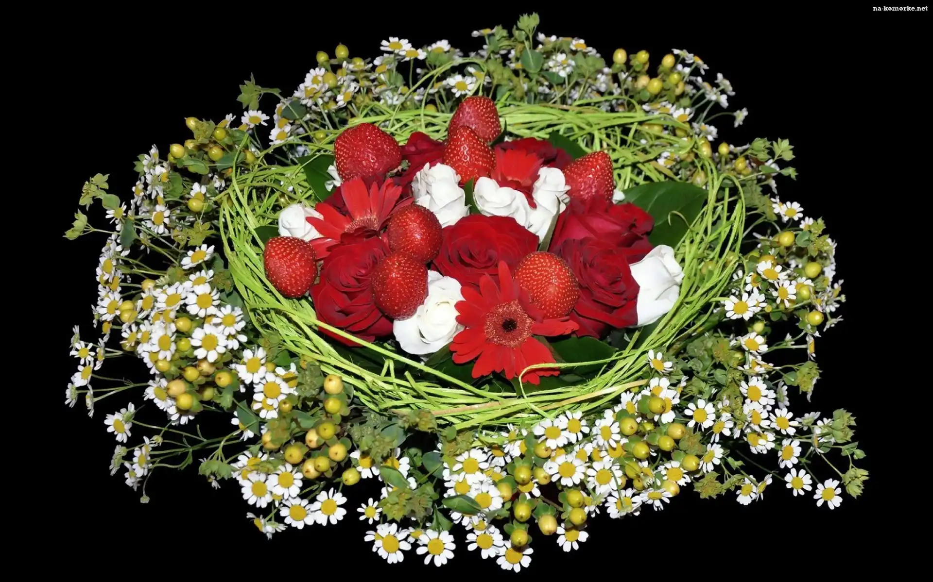 Truskawki, Kompozycja, Kosz, Rumianki na Komórkę