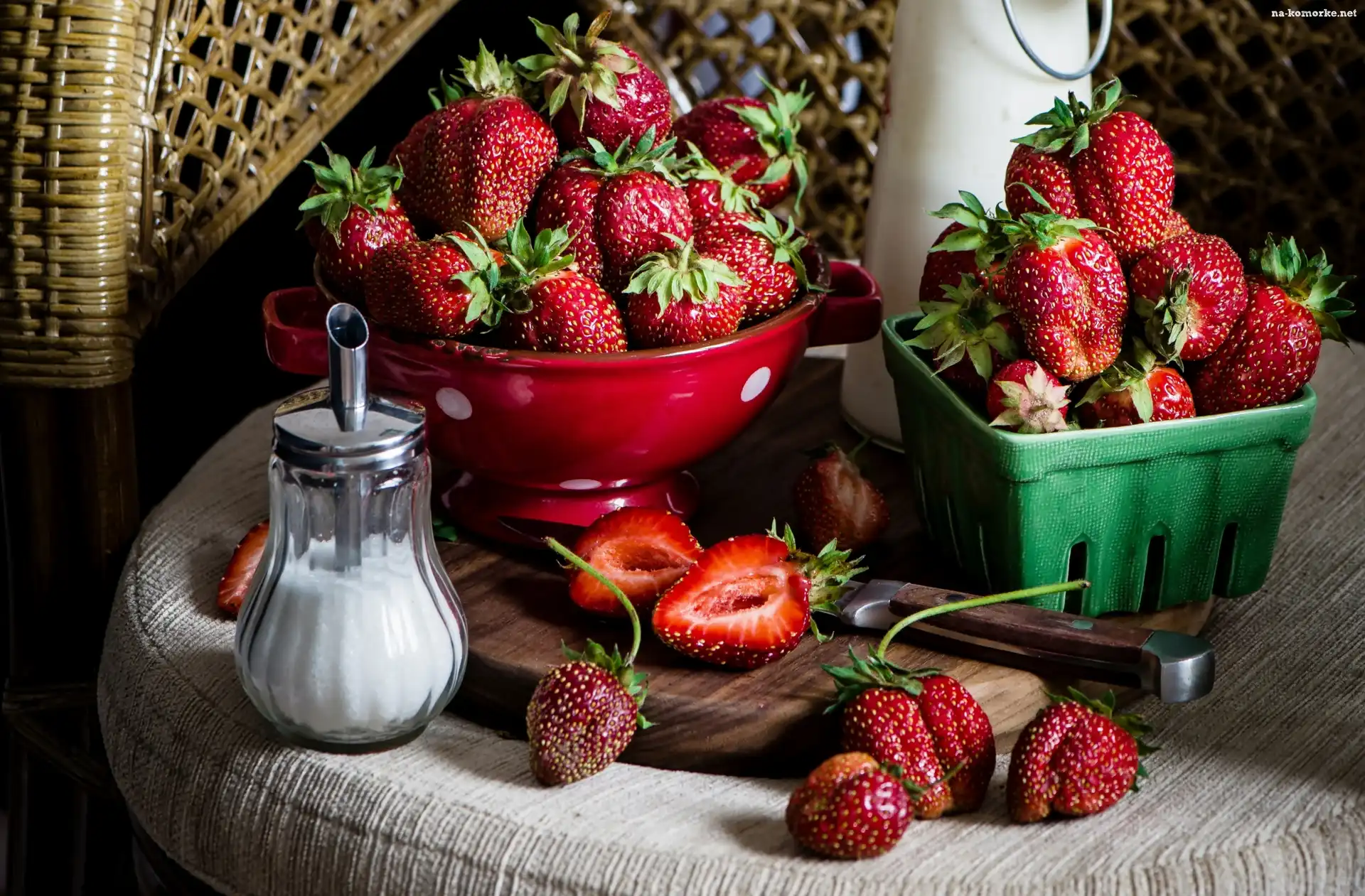 Truskawki, Cukier, Pojemnik, Miska na Komórkę