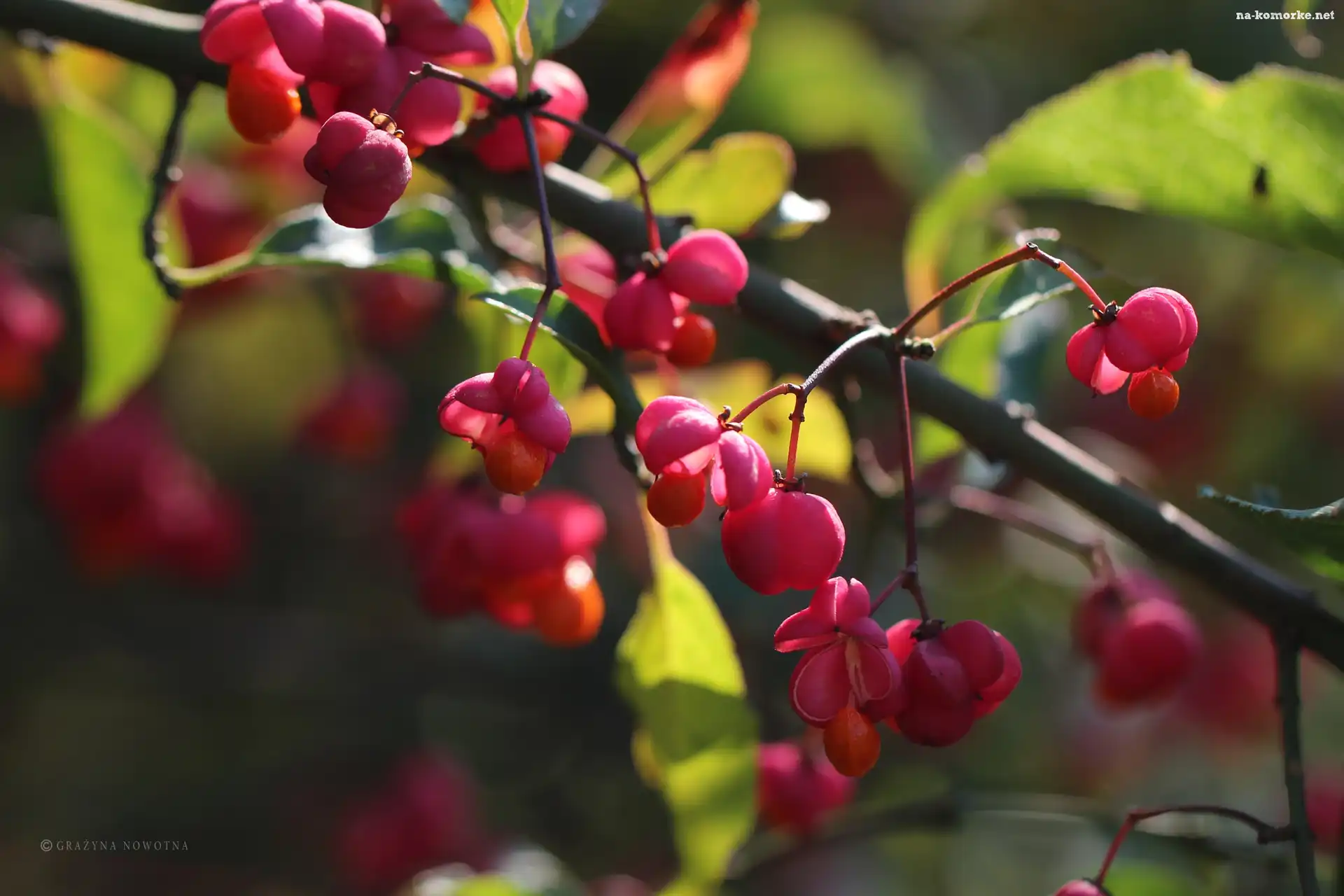 Trzmielina, Krzew, Różowe, Owoce na Komórkę