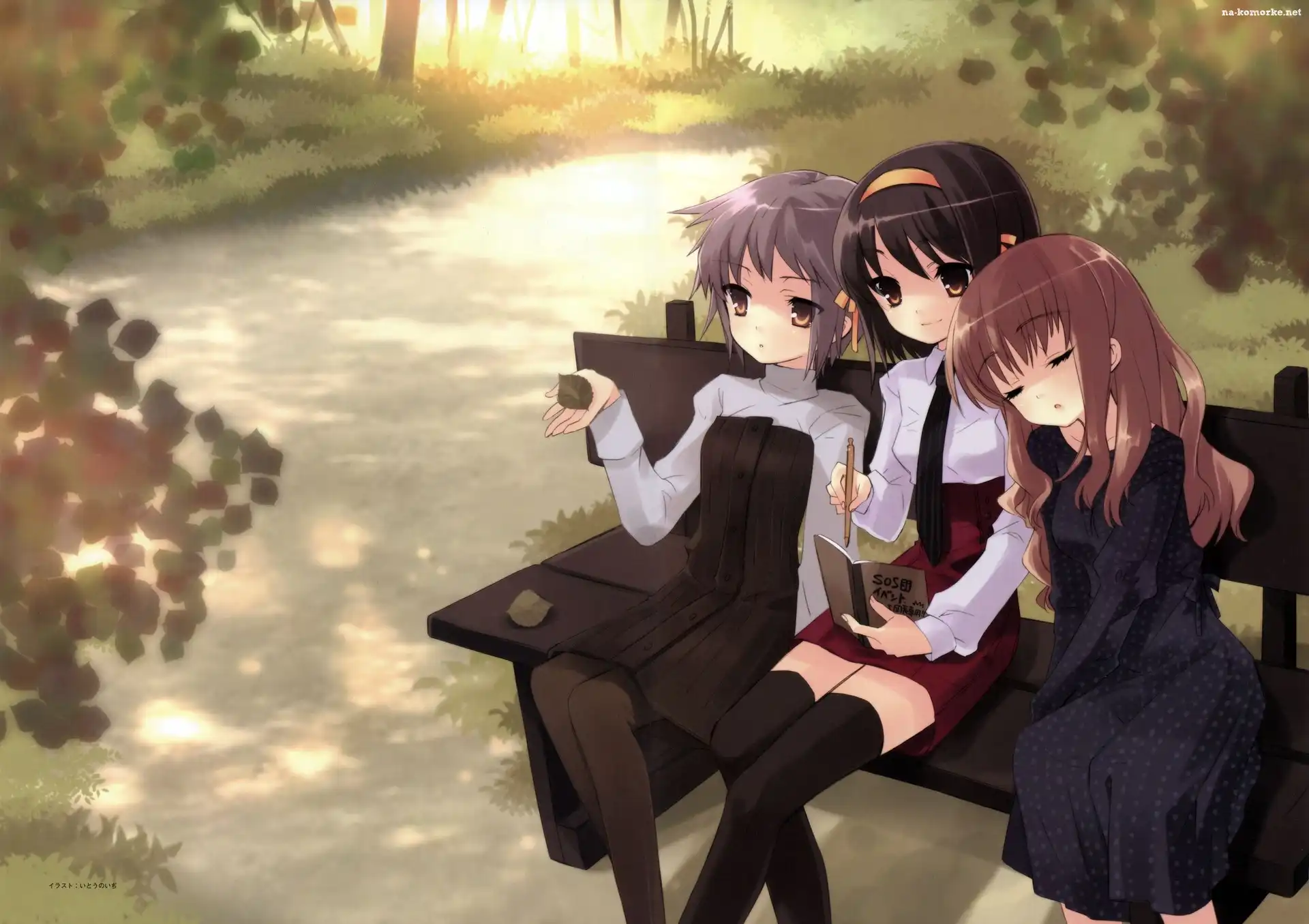 Trzy, Park, Dziewczyny, Ławka na Komórkę