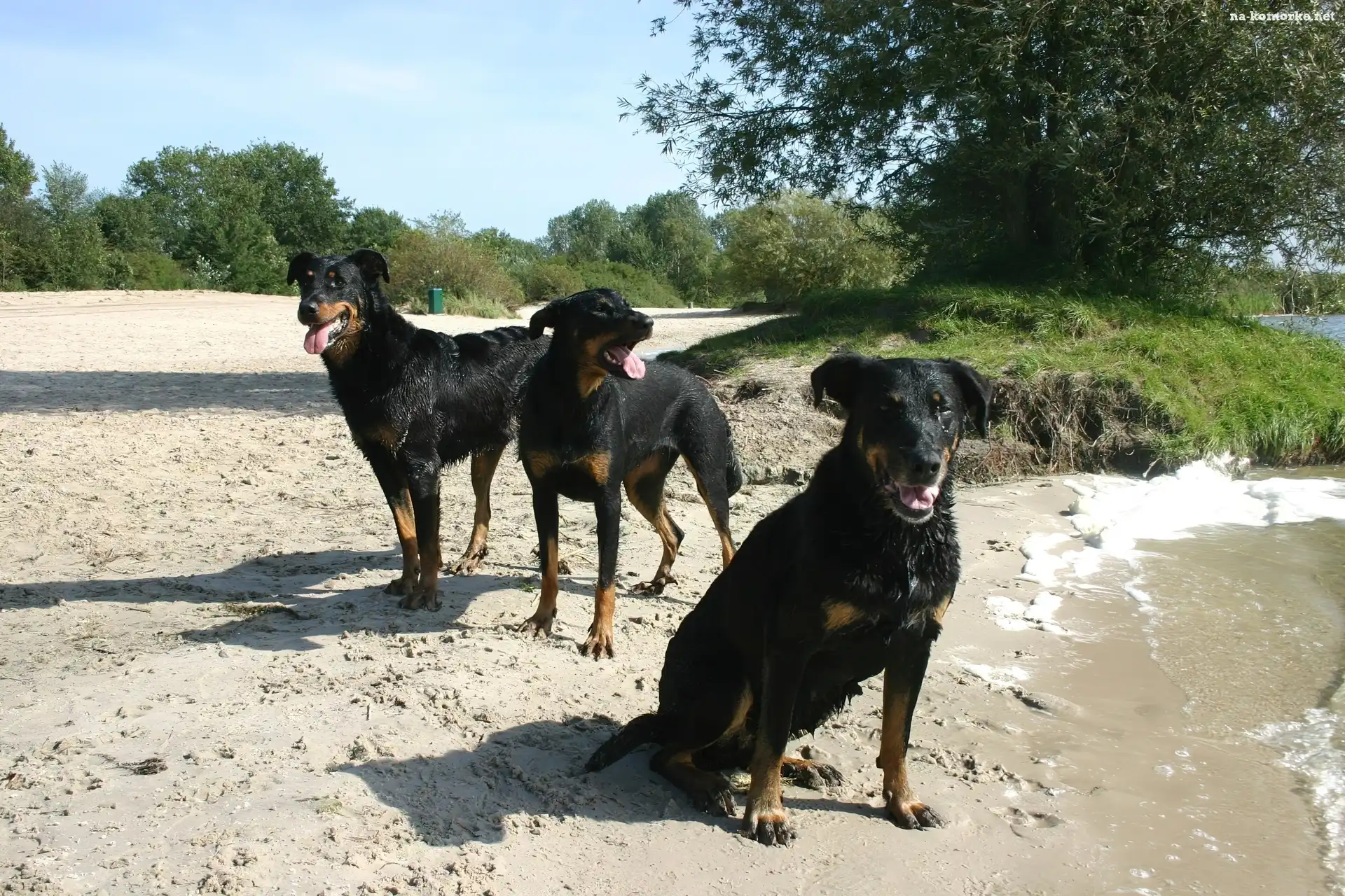 Beauceron, soczysta, trawa Młody, Owczarek francuski Beauceron Szczeniaki, Owczarka francuskiego Beaucerona Beauceron, łapy Trzy, drzewo, Beaucerony, przewrócone Owczarek francuski Beauceron, jęzor, kij Dwa, leżące, Beaucerony Pies, Trawa, Ludzie Beauceron, obroża, łańcuch Czarny, Beauceron Dwa, Owczarki francuskie Beauceron Owczarek francuski Beauceron, woda Słodki, szczeniak, Beauceron Głowa, Owczarka francuskiego Beaucerona