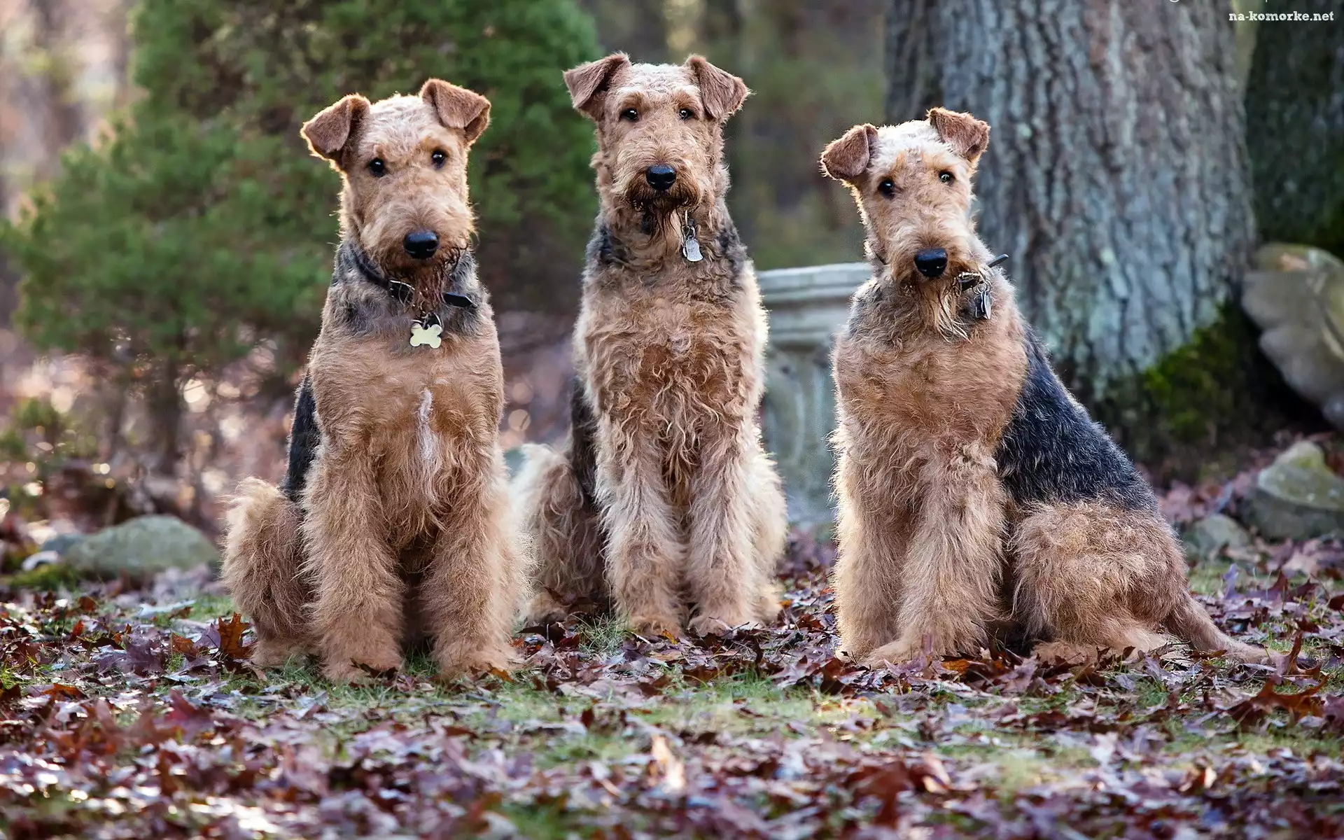 Trzy, Psy, Wire Haird Terrier na Komórkę