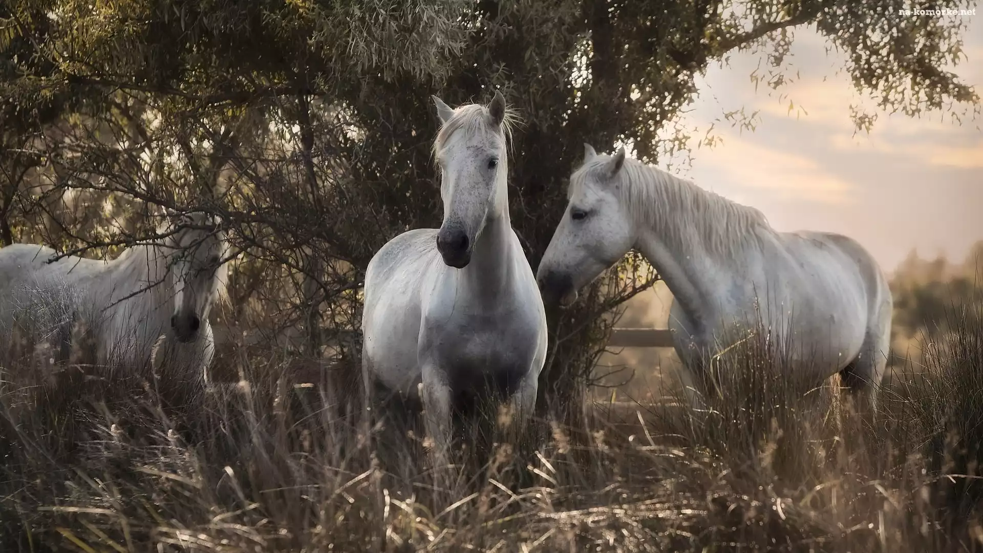 Trzy, Rośliny, Konie, Drzewo na Komórkę
