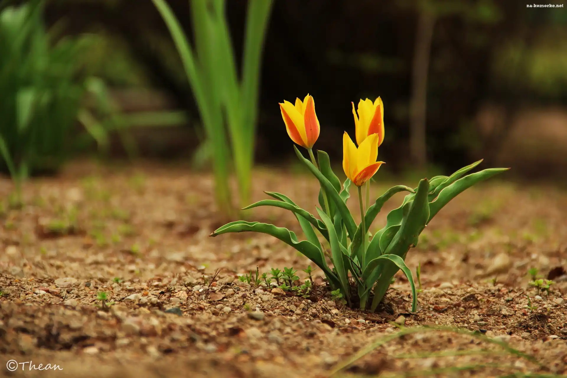 Trzy, Pomarańczowe, Tulipany, Zółte na Komórkę